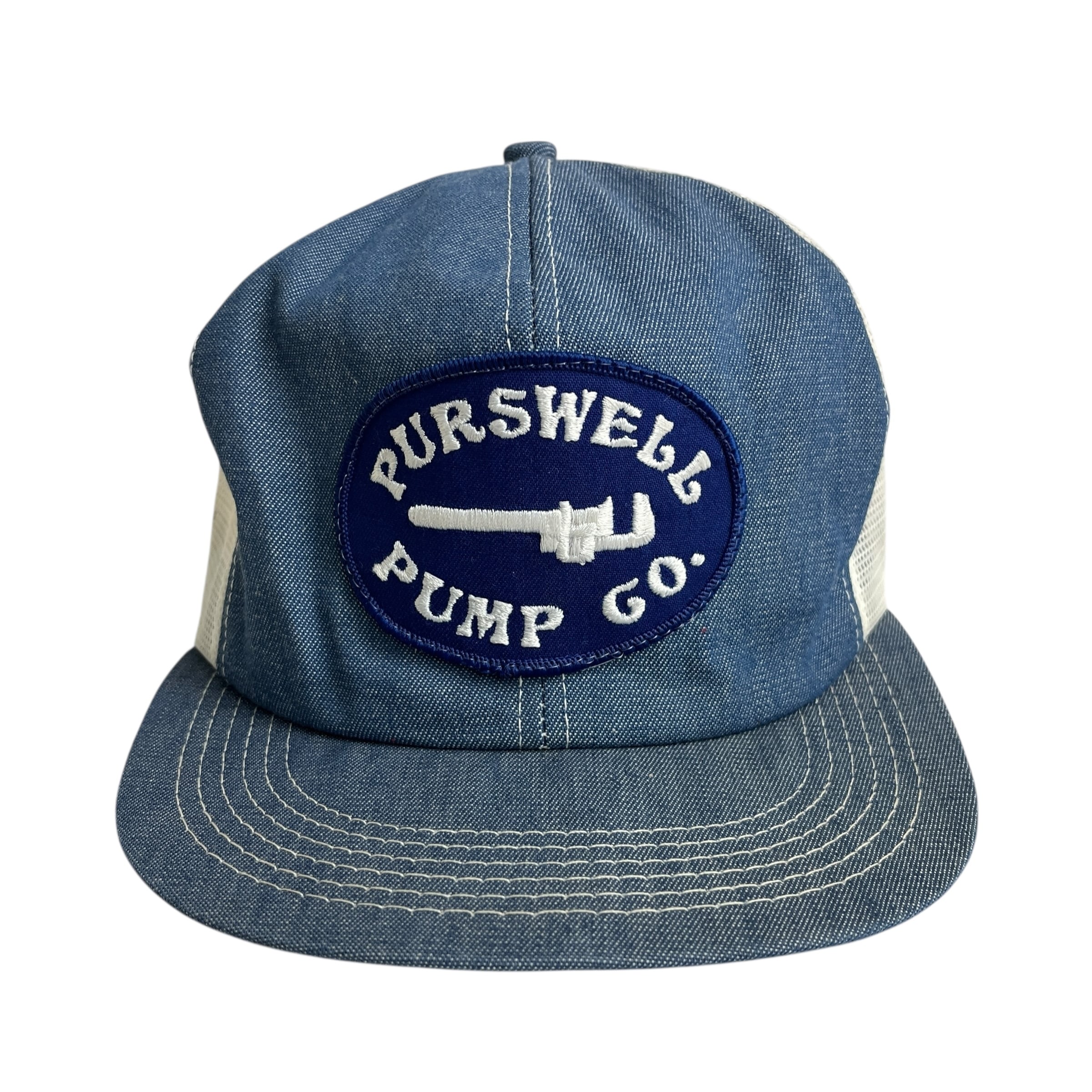 【キャップ/帽子】アメリカ製 Purswell Pump Co (パースウェル・ポンプ・カンパニー) メッシュキャップ ワッペン デニム ツートンカラー 企業物 US製 USA製 Made in USA K-Product ケープロ