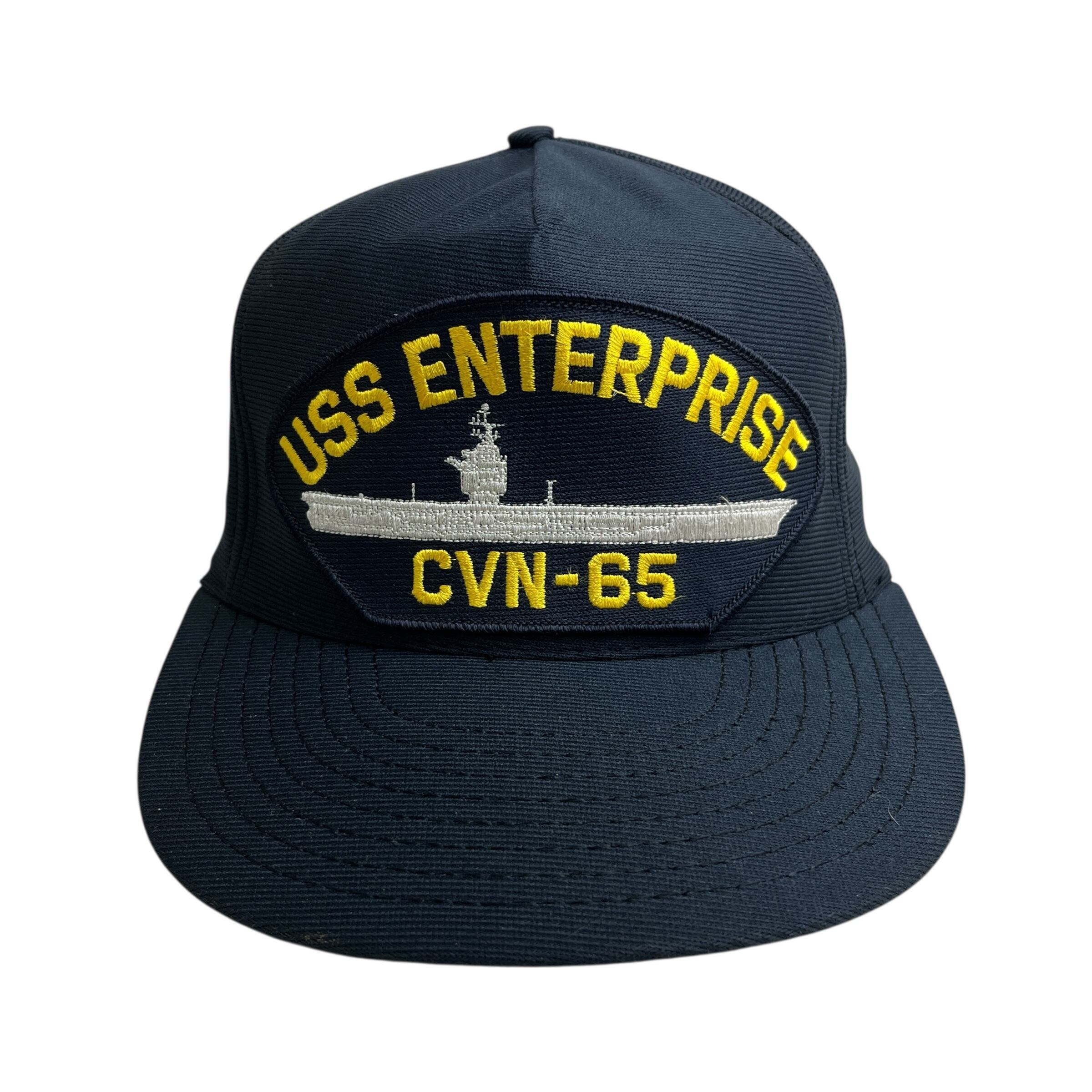 深いネイビーカラーにUSS Enterprise CVN-65の刺繍が施されたキャップ。CVN-65は1961年に就航した世界初の原子力空母で、その歴史的な存在感を表現したデザインです。ミリタリーテイストのヴィンテージキャップとして、ファンやコレクターにもおすすめの一品です。