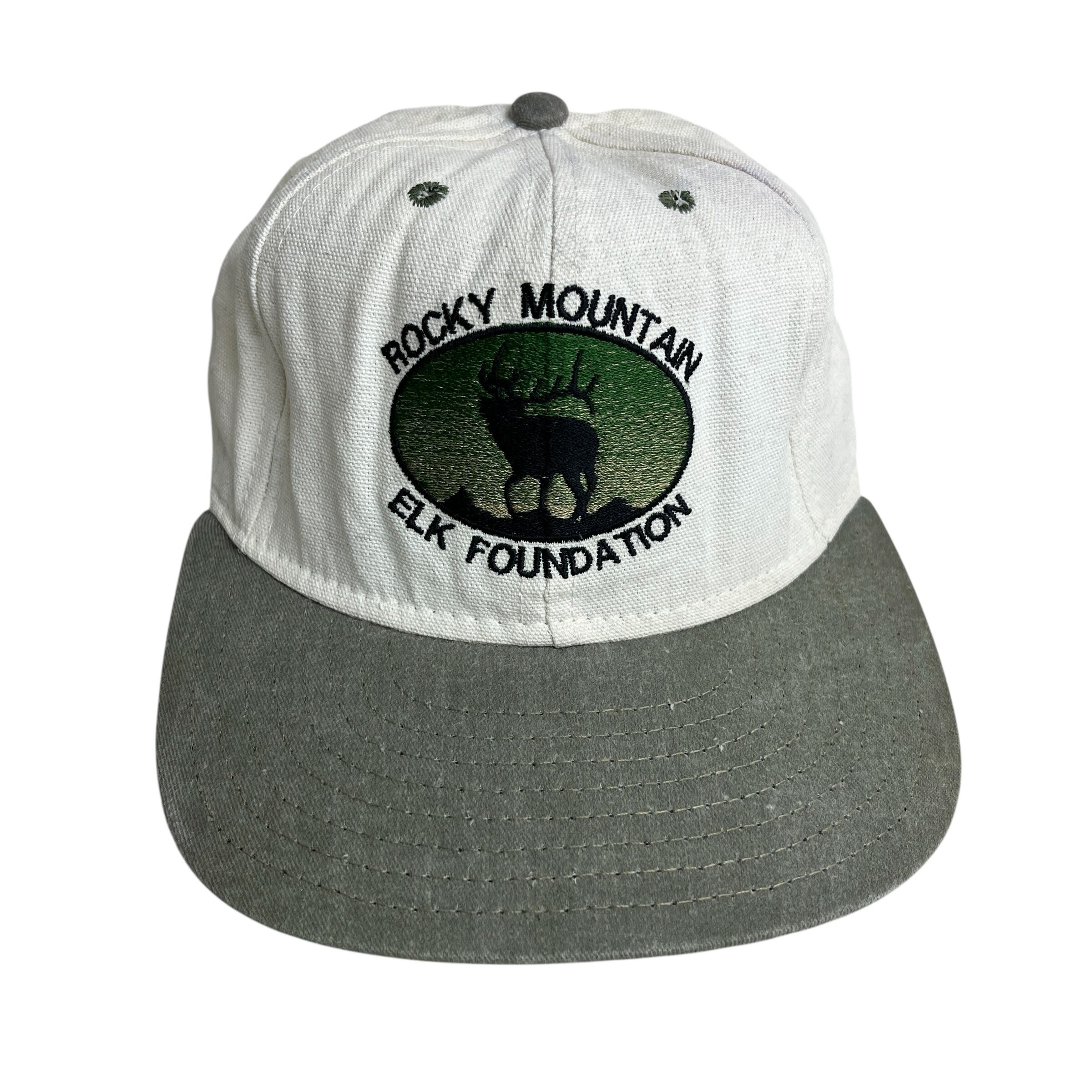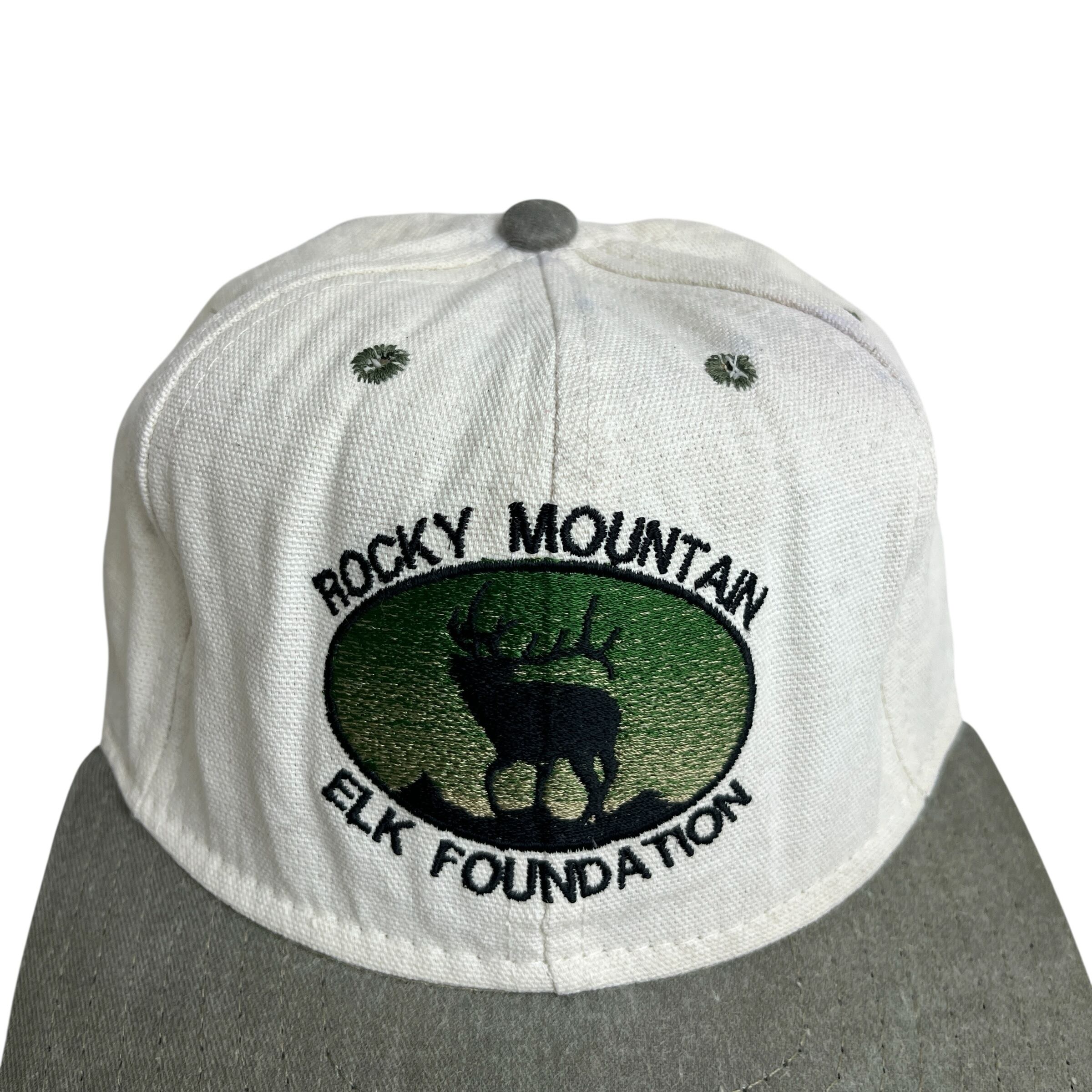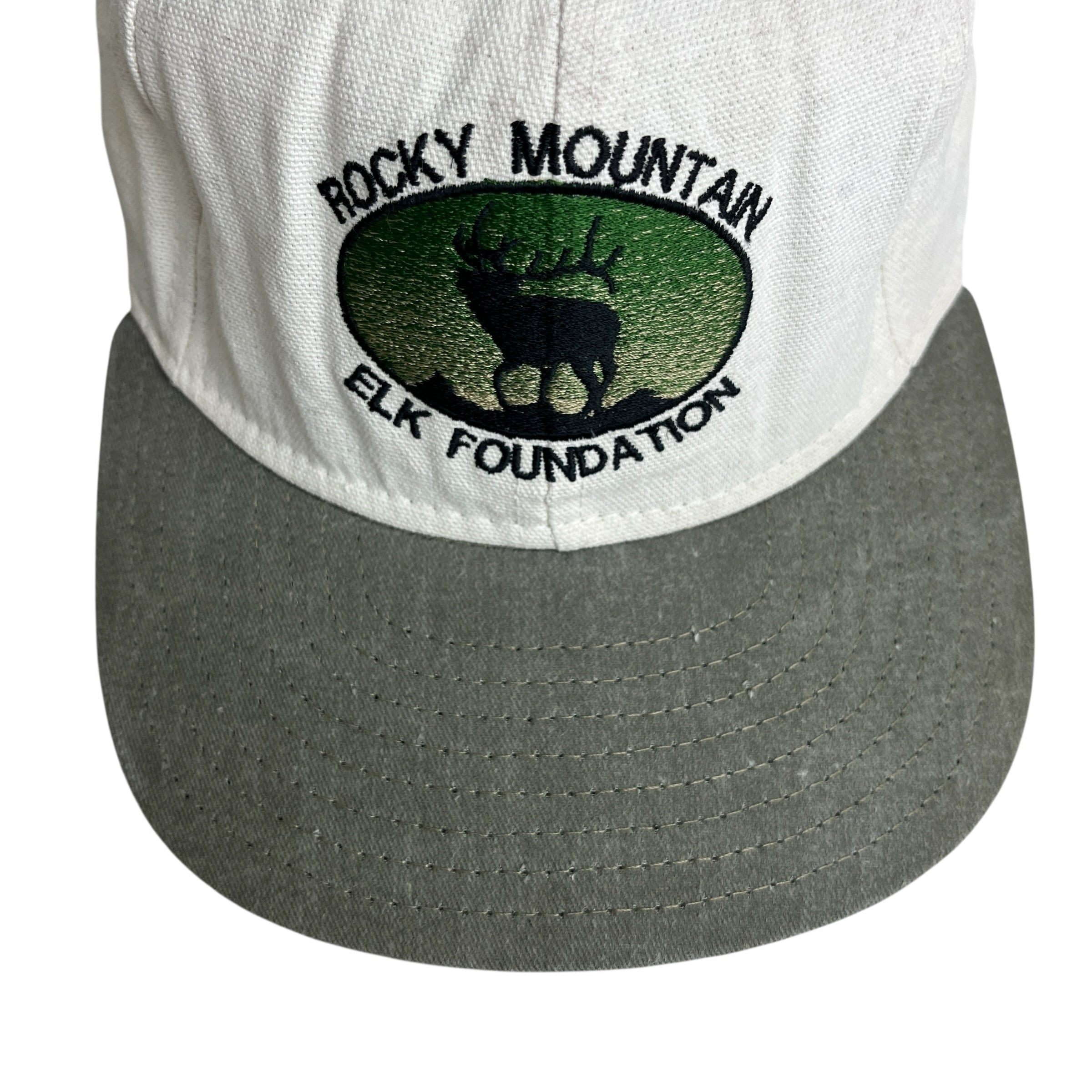 【キャップ/帽子】90s ROCKY MOUNTAIN ELK FOUNDATION(ロッキーマウンテン・エルク財団)ビンテージキャップ トラッカー ツートンカラー ホワイト 白 カーキ グリーン 緑