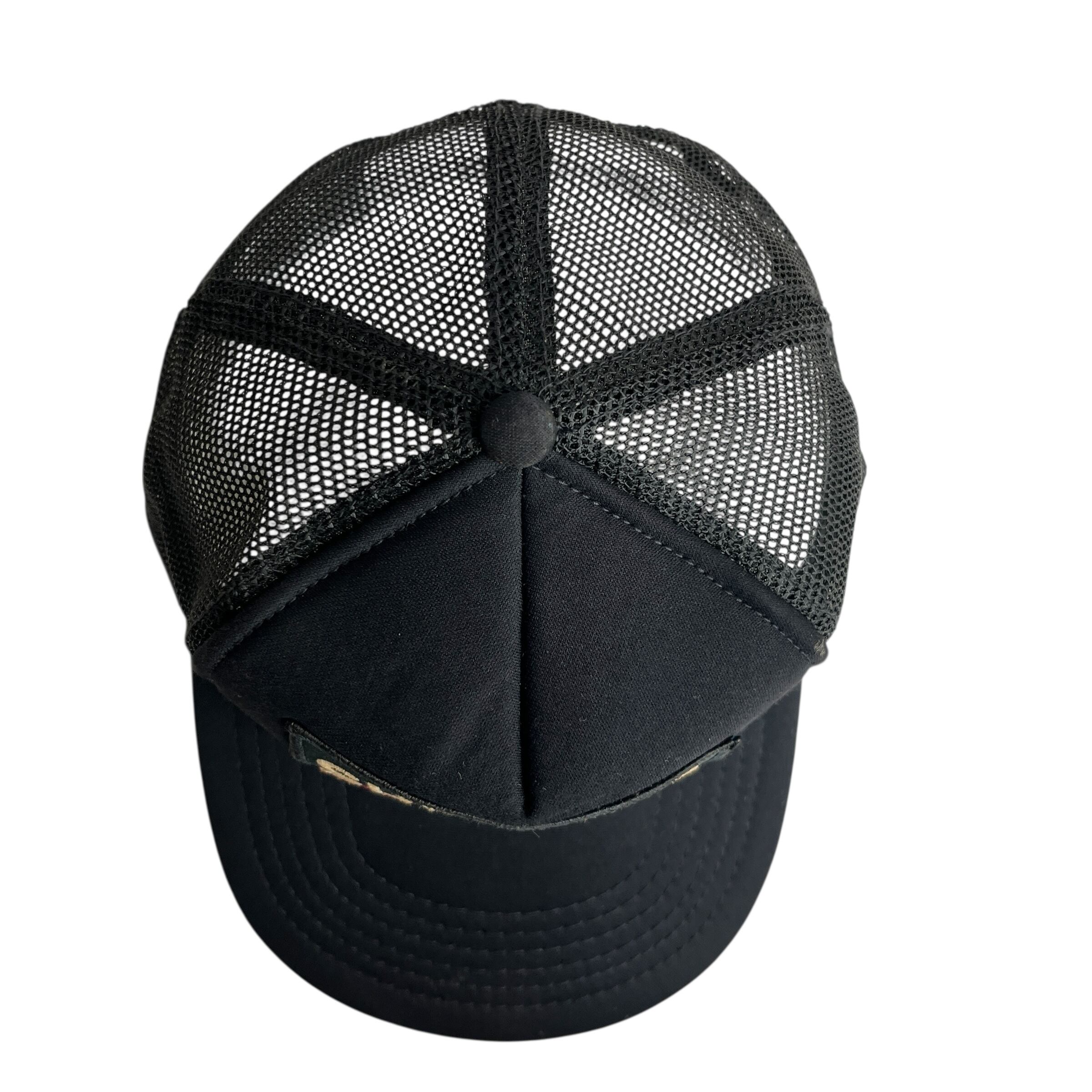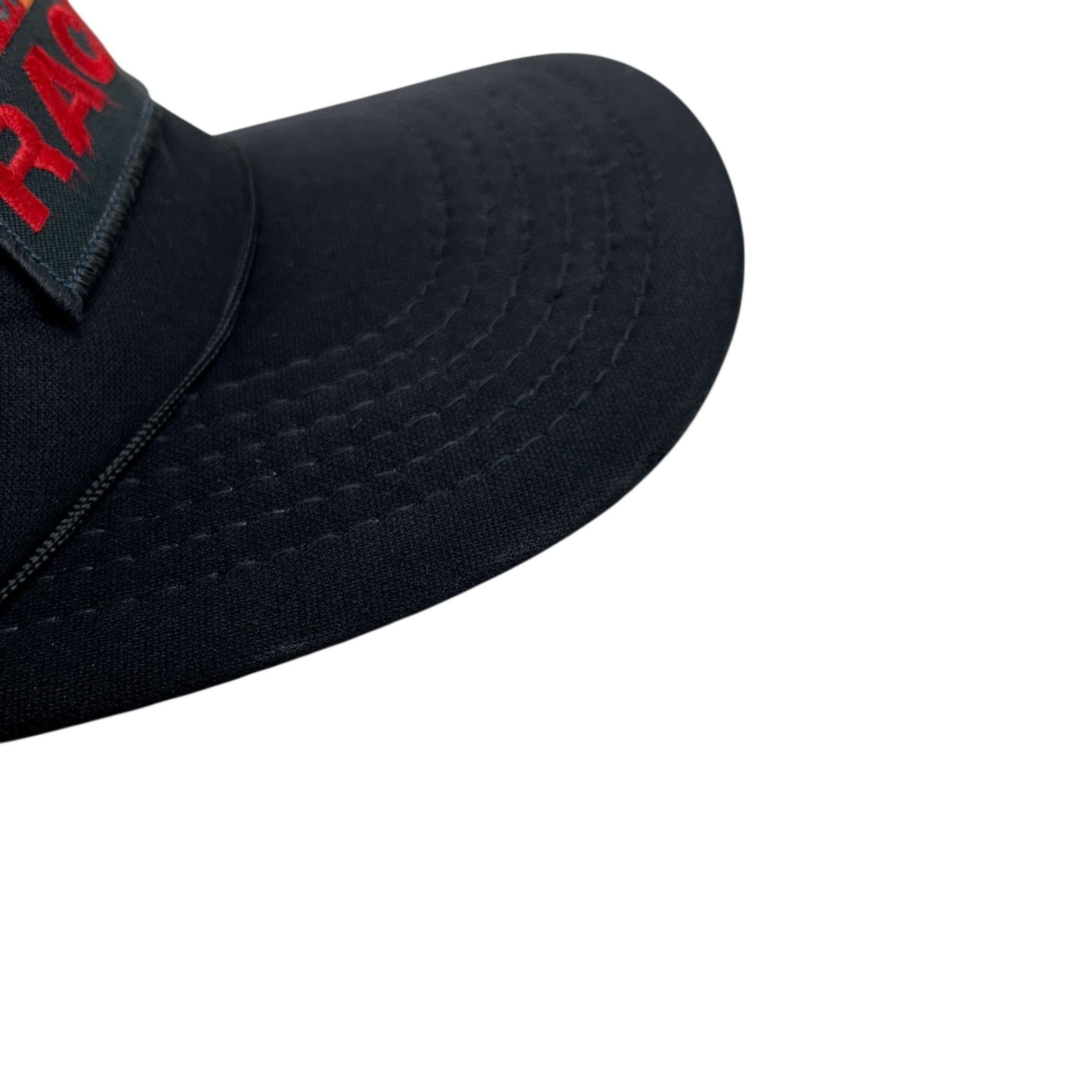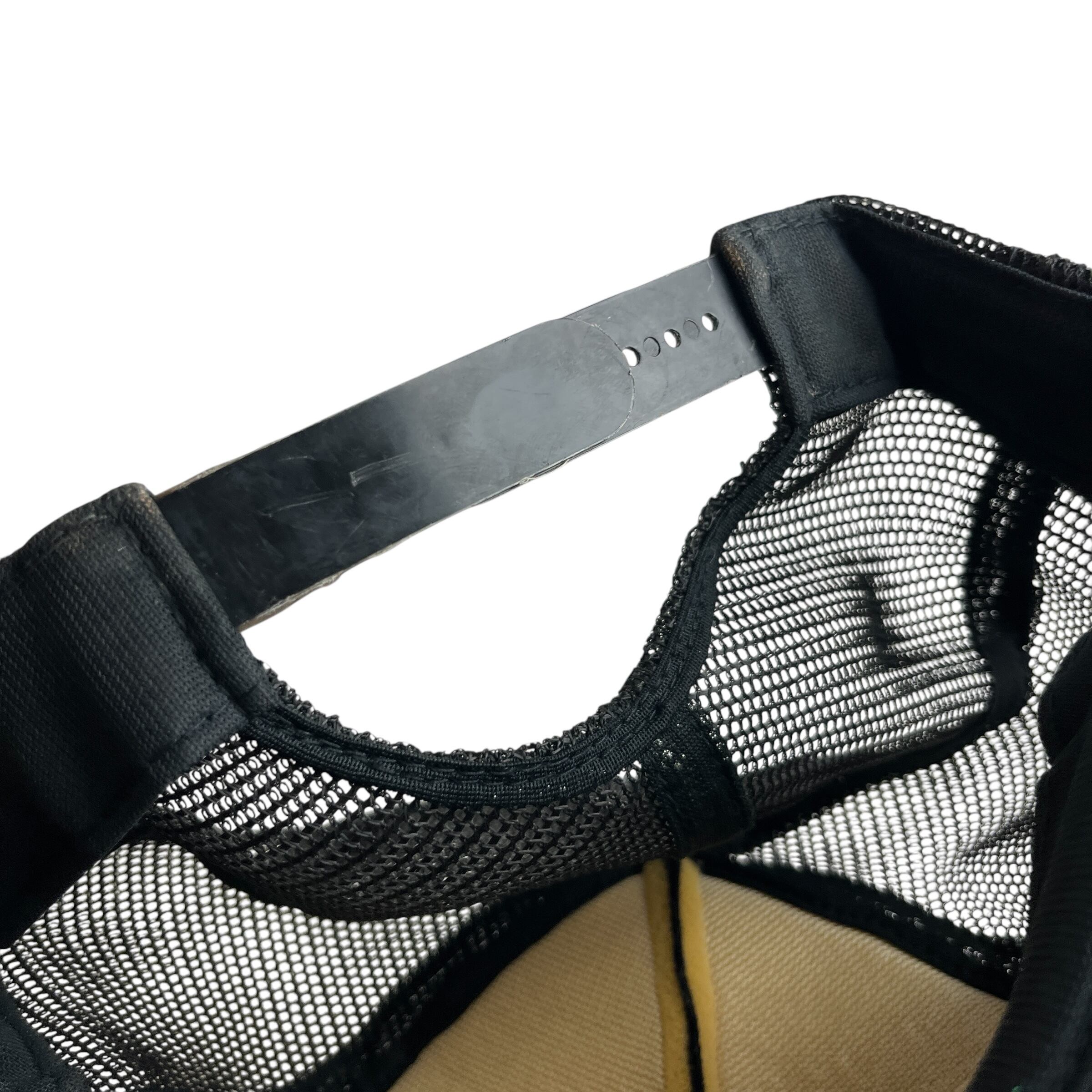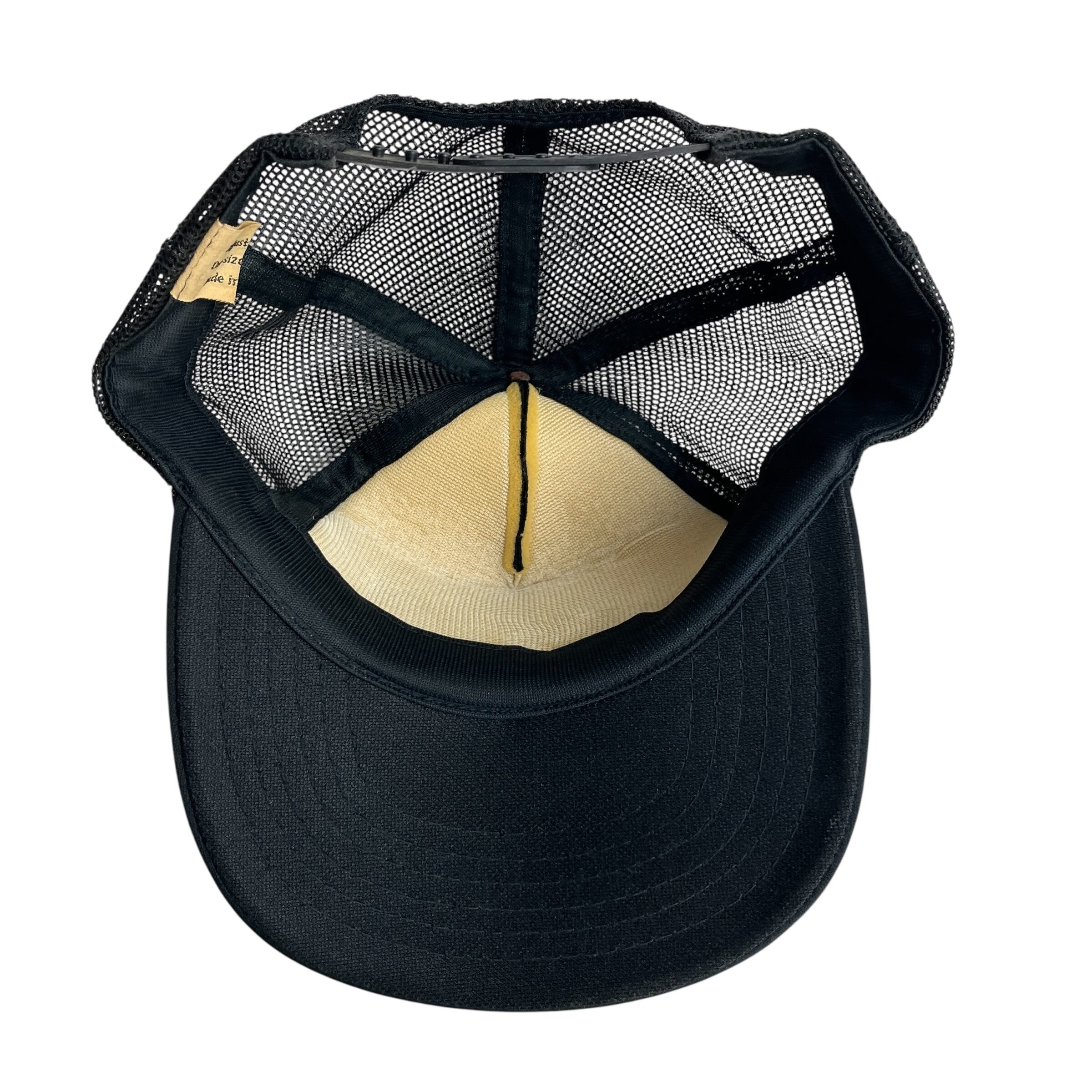 80年代〜90年代初頭頃のヴィンテージ・トラッカーキャップです。石油大手EXXONのモーターオイルブランド「SUPERFLO」の希少なレーシングプロモーションアイテム。当時のモータースポーツシーンを彷彿とさせる、レトロなカラーリングの刺繍ワッペンが抜群の存在感を放ちます。無骨なブラックボディとの対比もクールな一品。古着好き、企業物コレクター、モータースポーツファンにおすすめです。