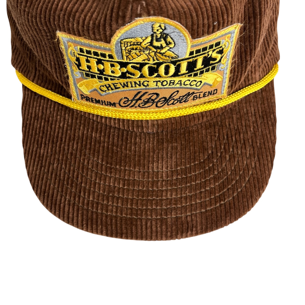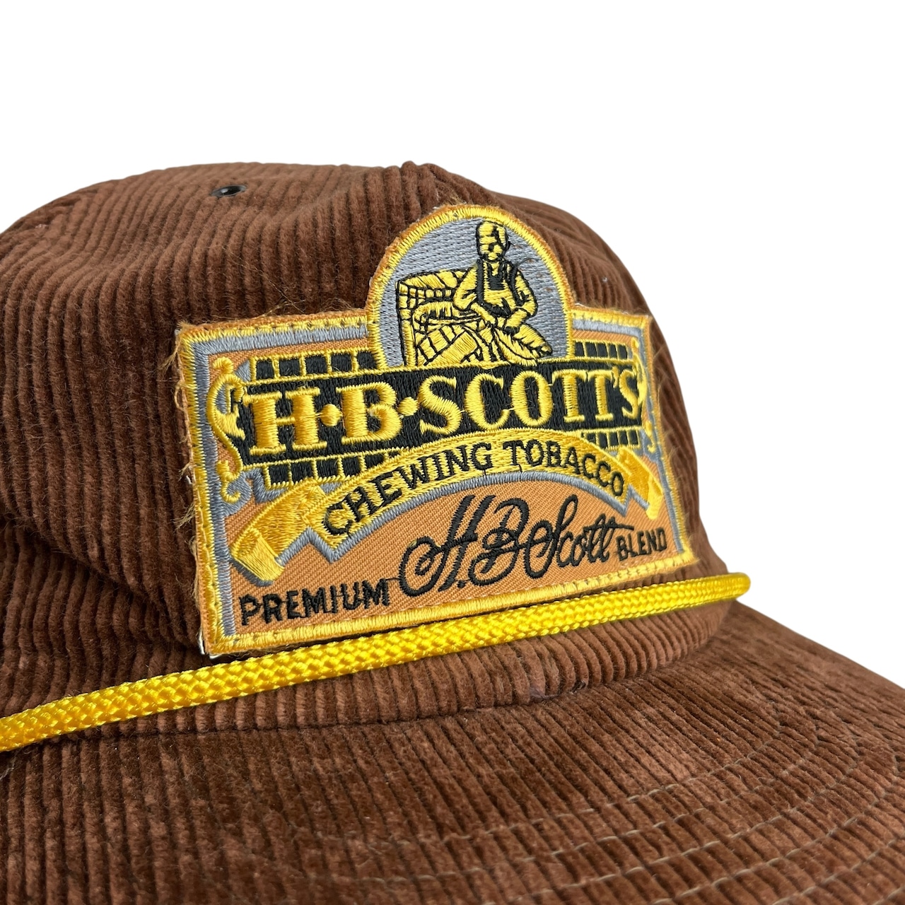 【キャップ/帽子】アメリカ製 USA製 HB SCOTT'S (エイチビースコッツ) コーデュロイキャップ ビンテージキャップ ワッペン 噛みタバコ ブラウン 茶色