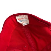 鮮やかなレッドのボディに、ネイビーの筆記体で「Northern Lanes Bowling」と刺繍されたビンテージキャップです。これは、ミシガン州ミッドランドにあるボウリング場「Northern Lanes」のリーグ・ノベルティグッズと思われます。内側のタグは「YUPOONG」で「Made in Dominican Republic」(ドミニカ共和国製)の表記があり、製造年代は1980年代後半から1990年代と思われます。レトロでスポーティーな雰囲気があり、アメリカのローカルな娯楽文化を象徴するコレクタブルなキャップです。