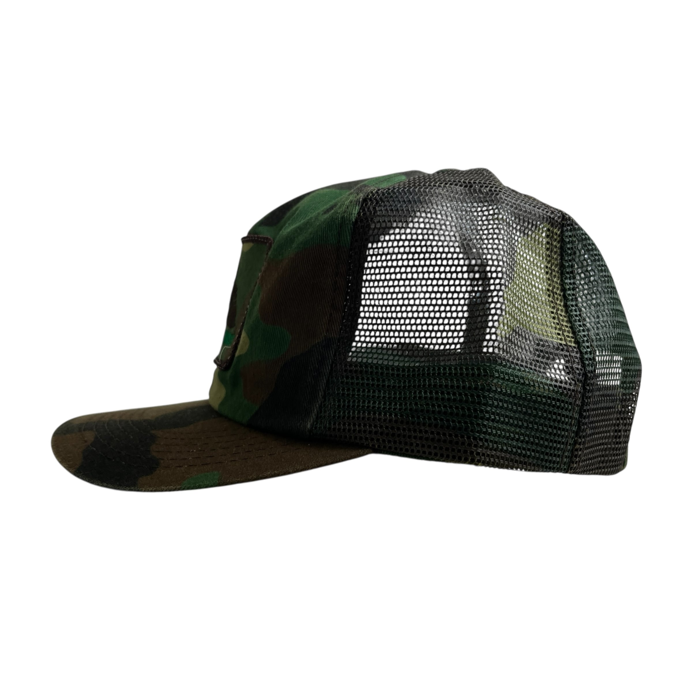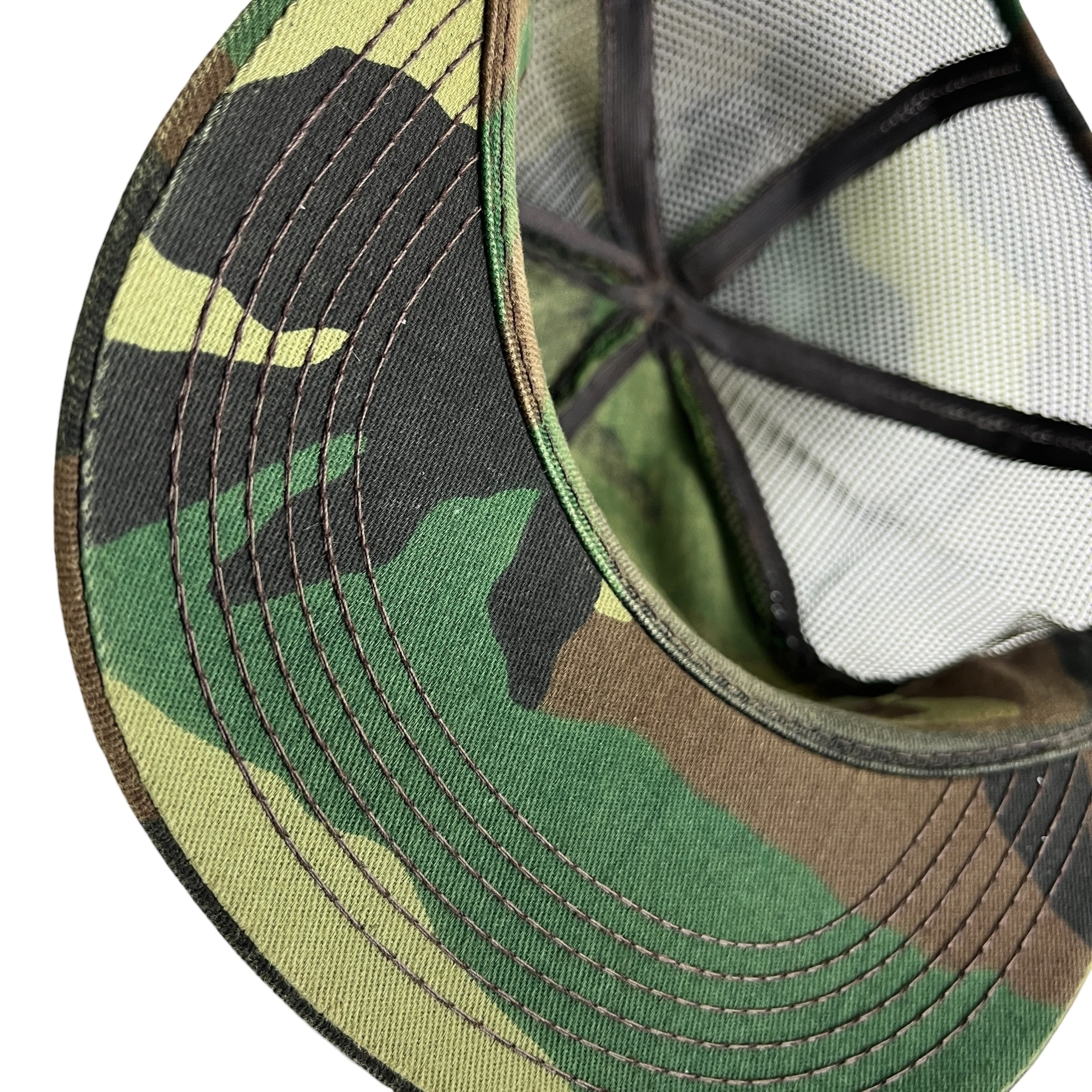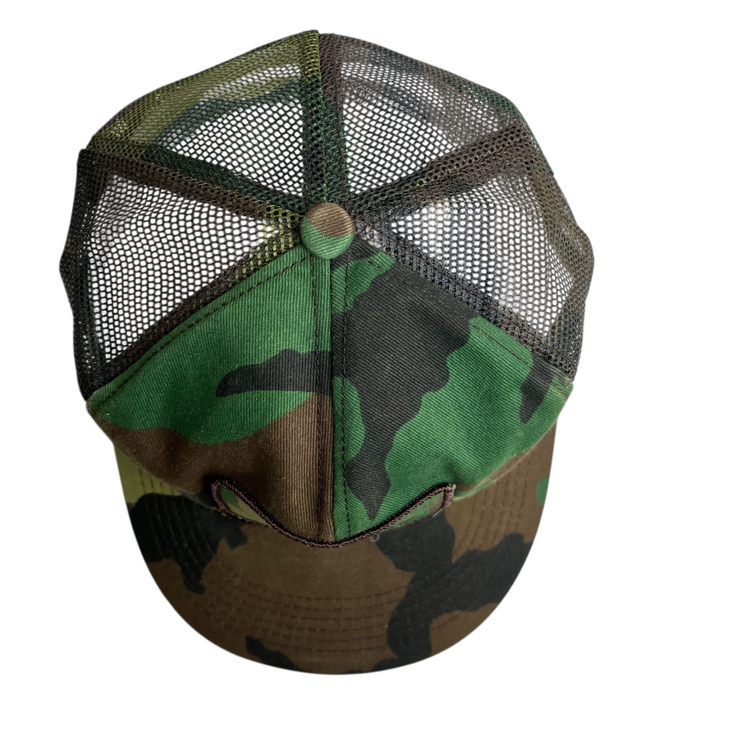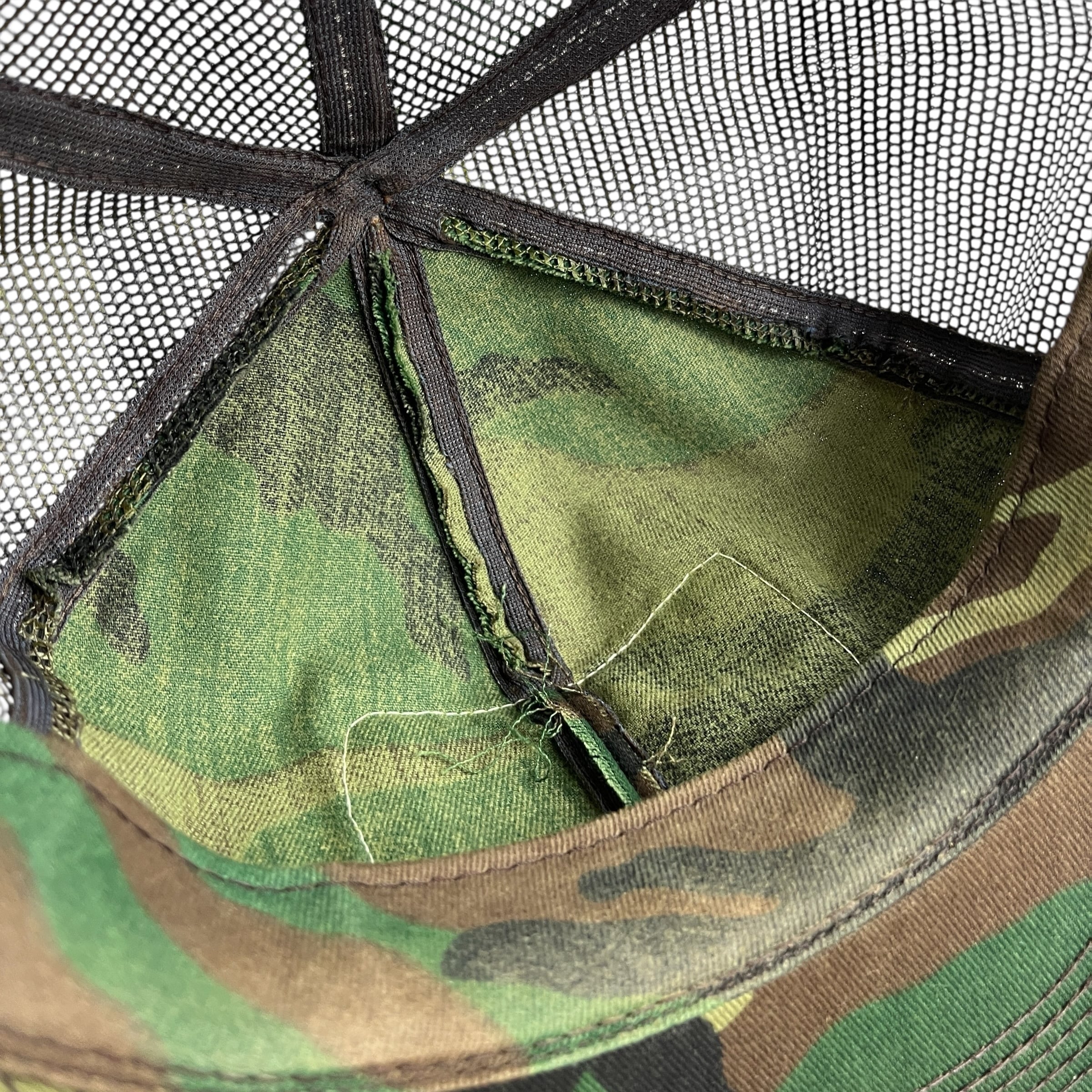 【キャップ/帽子】80-90s アメリカ製 USA製 Kelly Tires (カラータイヤーズ) ビンテージキャップ カモ柄 ワッペン 総柄 メッシュキャップ