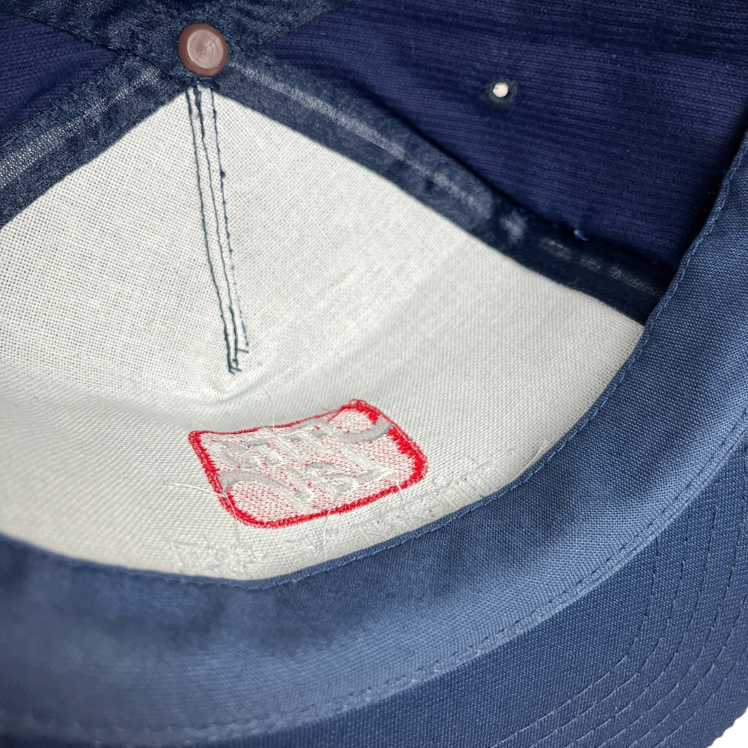 深みのあるネイビーのコーデュロイ生地をベースに、フロントにはお馴染みの赤いブランドロゴと、ケンタッキー州ルイビルの拠点を指すと思われる「LOUISVILLE S&D」の文字が白の刺繍で施されています。バイザー付け根の編み込みロープが、80〜90年代らしいクラシックなワークスタイルのアクセントになっています。