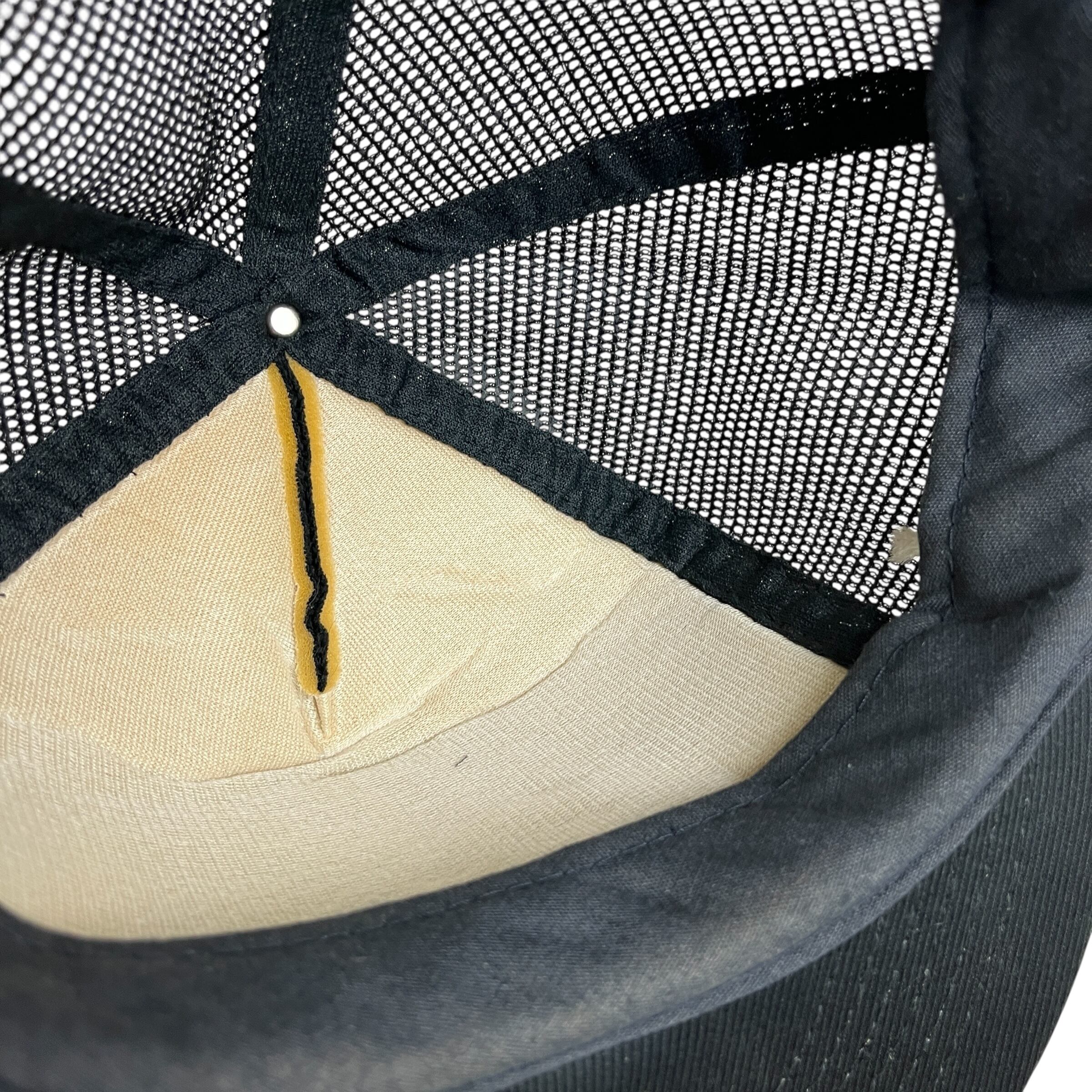 ブラックのボディに、ブランドを象徴するクラシックなフォントのロゴ刺繍が白地で映える、硬派でワーク感の強いデザインが魅力です。ボディはヴィンテージキャップ市場でも珍しいSPEX社製を採用しており、質は間違いないです。