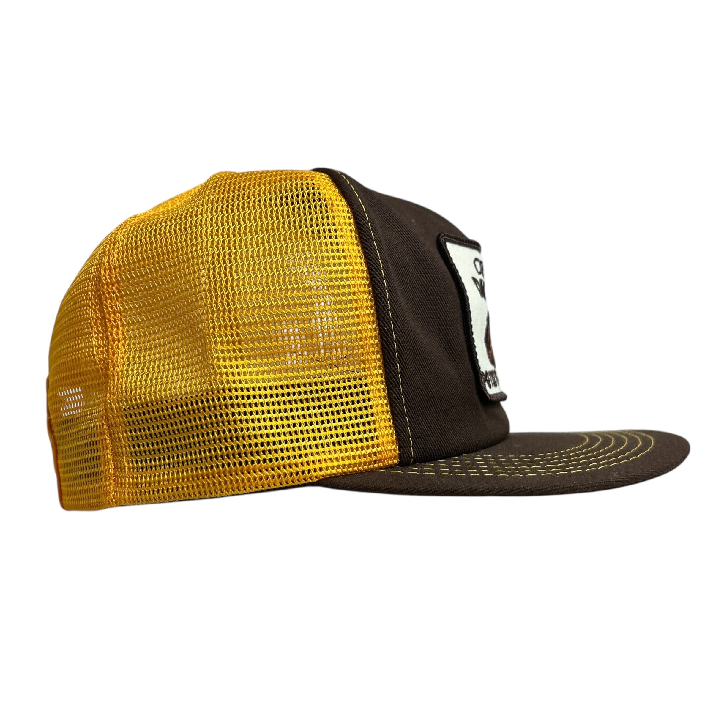 【キャップ/帽子】アメリカ製 USA製 ORTHO DIQUAT (オーソ・ダイクワット) ビンテージ メッシュキャップ ワッペン 企業物 企業ロゴ ブラウン 茶 イエロー 黄