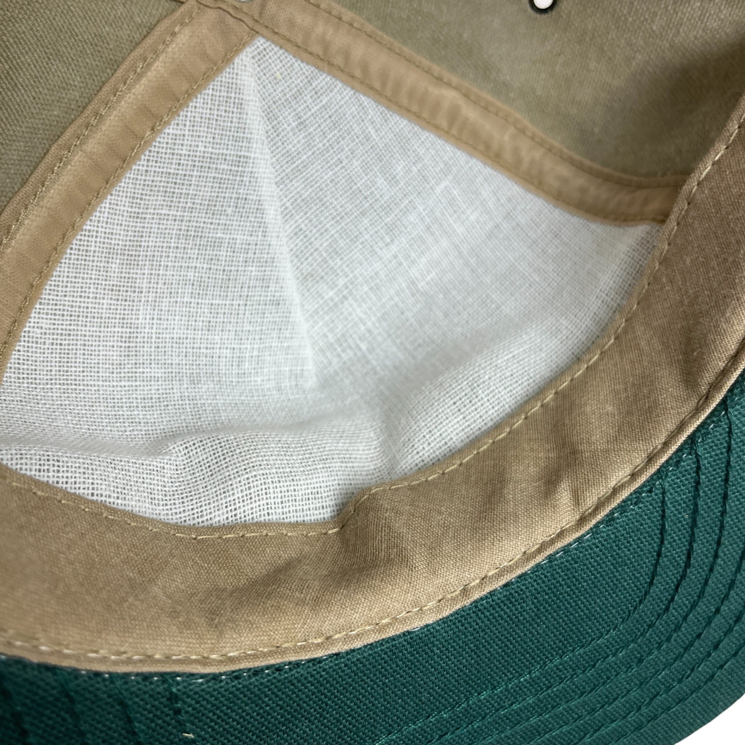 ミズーリ州からアーカンソー州にまたがるオザーク高地をモチーフにした、繊細なグラフィック刺繍が最高にクール。雰囲気抜群のカーキ系ボディにグリーンのバイカラーが、現代のストリートやアウトドアファッションにも完璧にハマります。