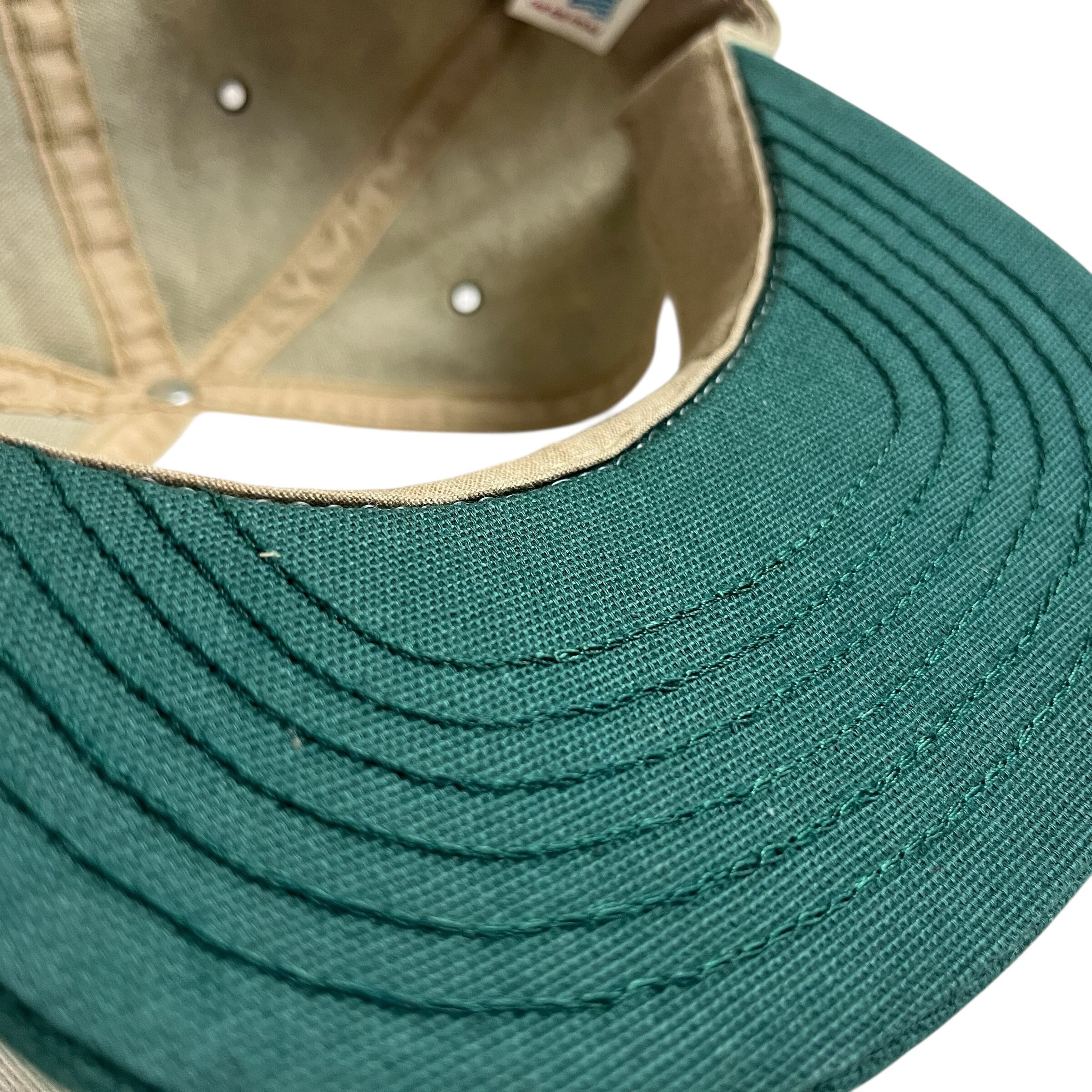 使い込まれたような絶妙な風合い(フェード感)があり、現行品では絶対に出せない「本物のヴィンテージ」のオーラを放っています。目立ったダメージもないグッドコンディション。USA製のアウトドア・スーベニア系キャップは年々市場から姿を消している希少品ですので、この機会をお見逃しなく!