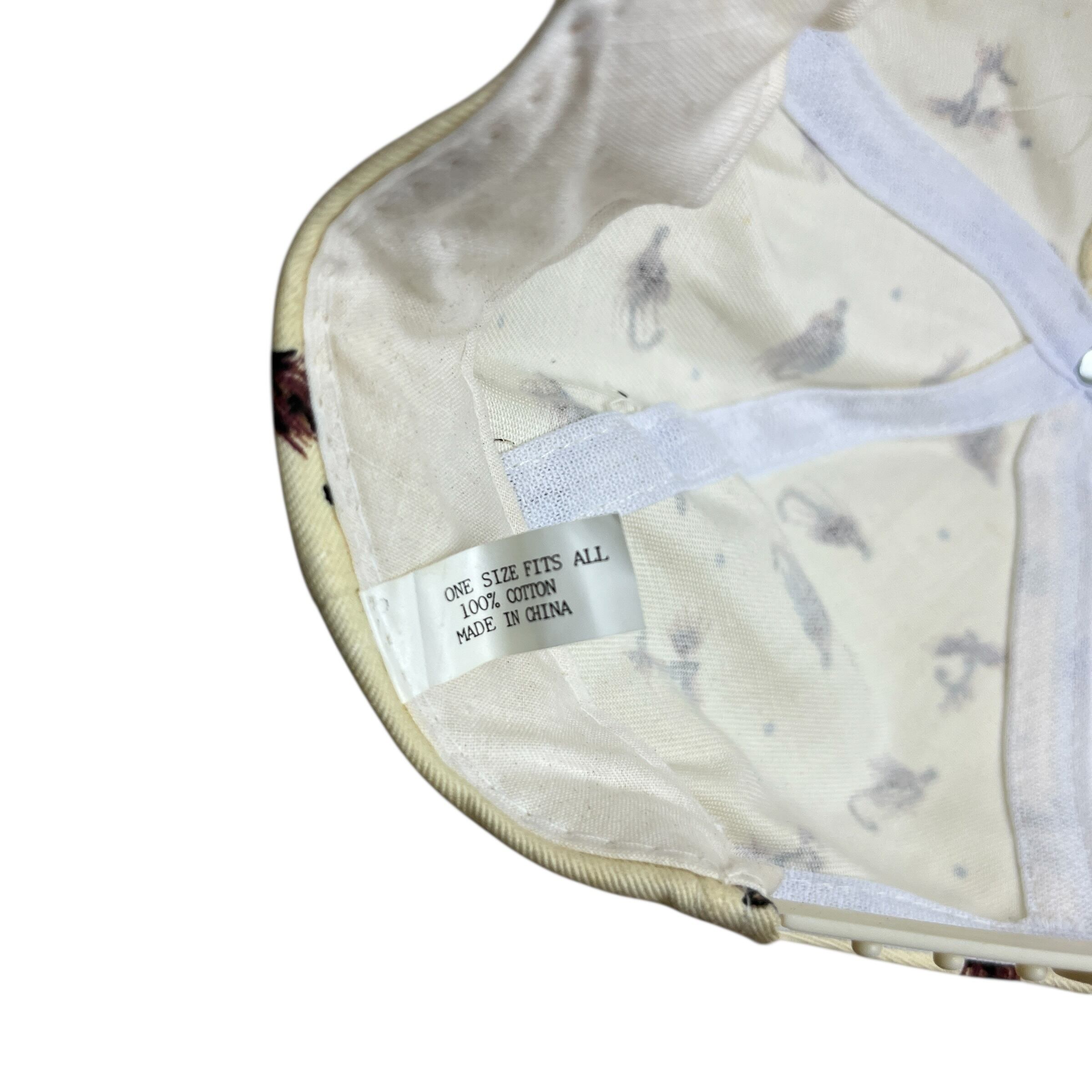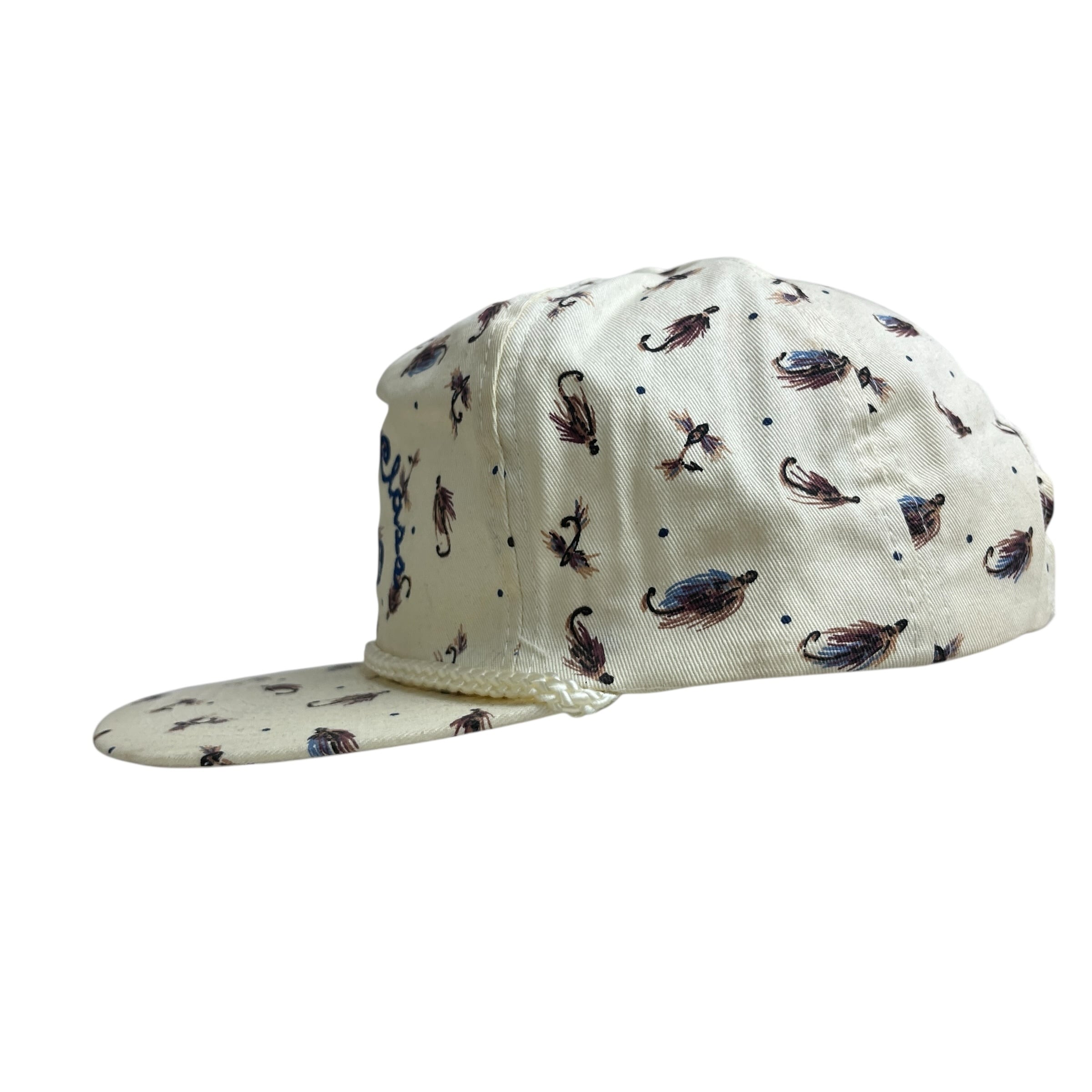ルアー、釣りの仕掛けの柄が全体にデザインされているとても可愛いキャップです!
