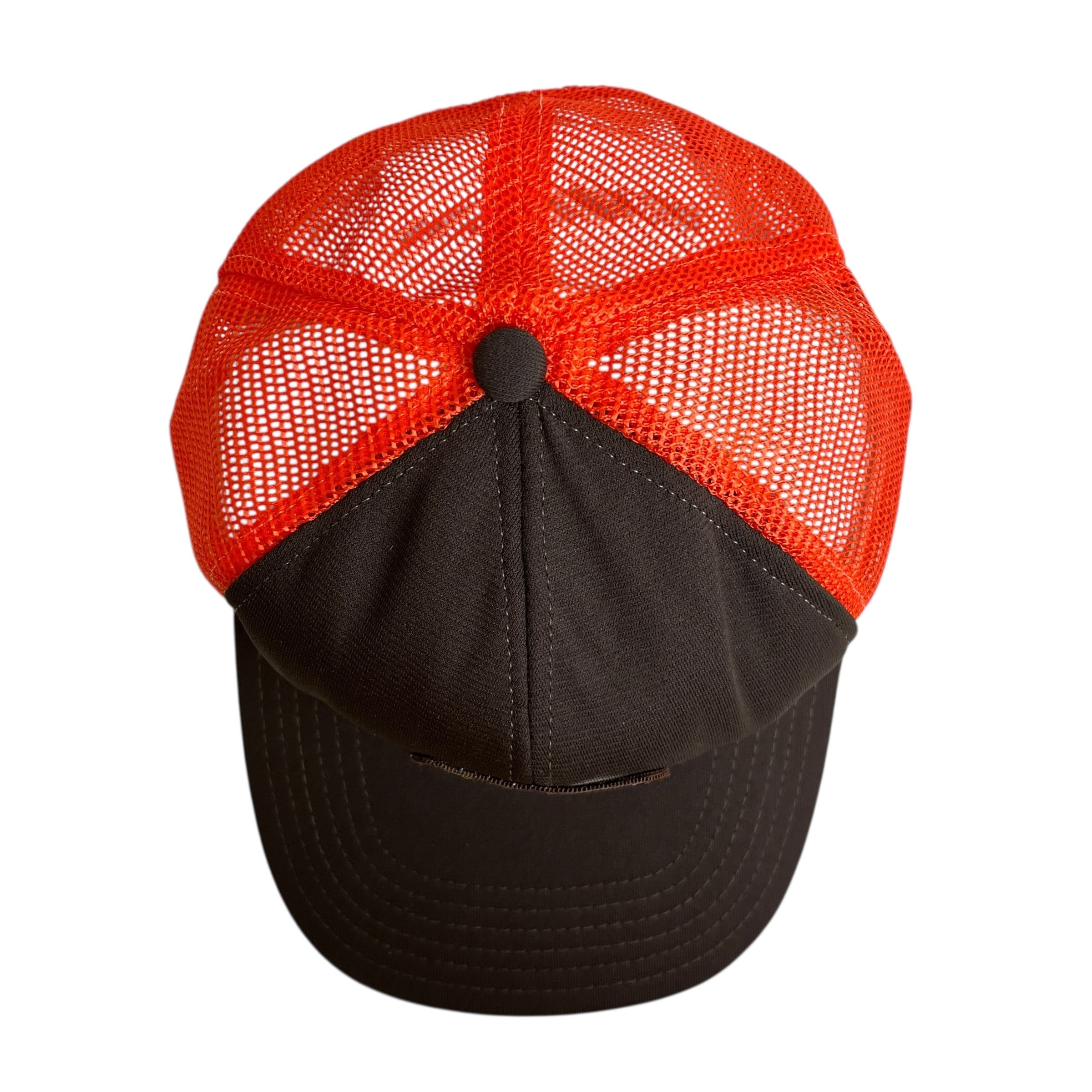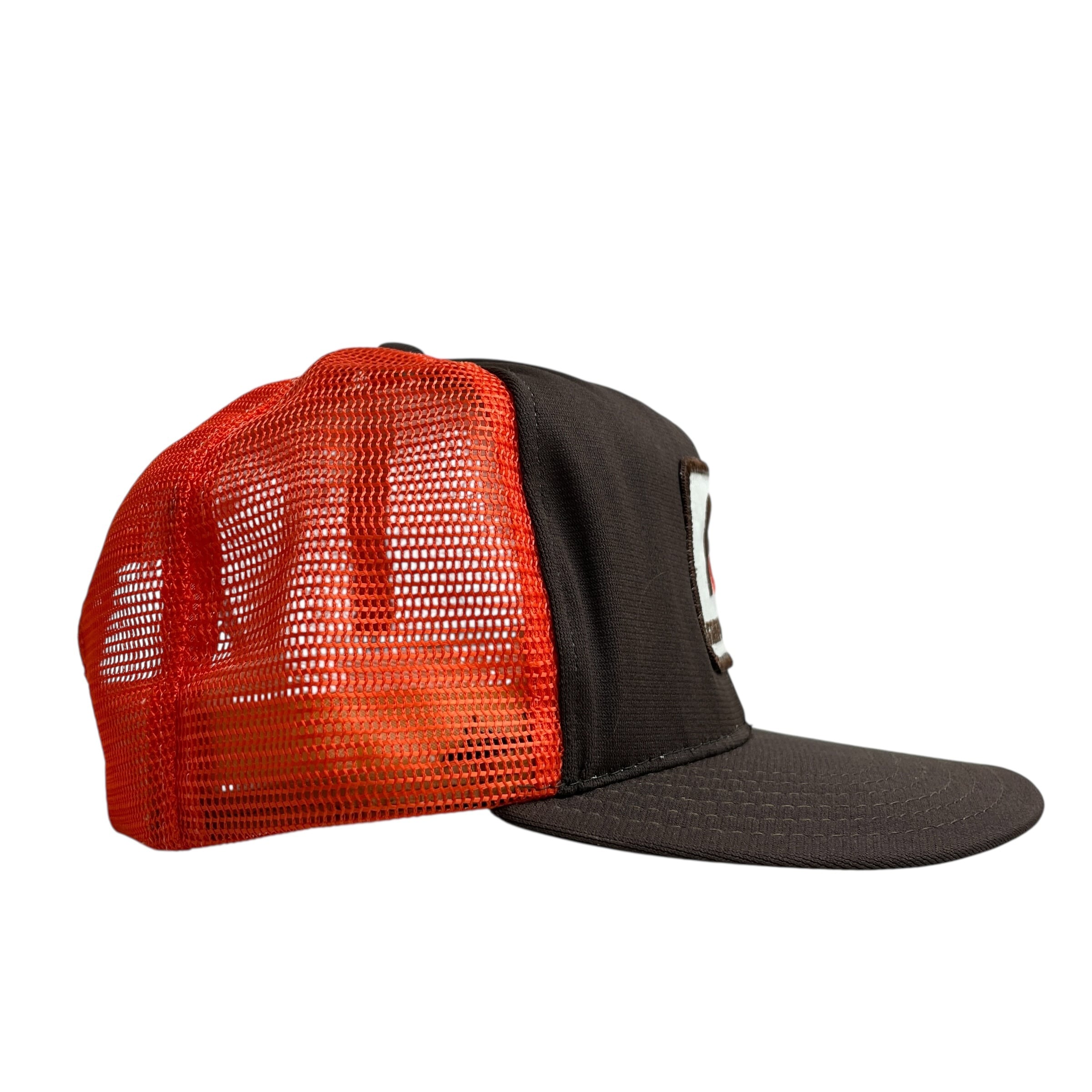 ブラウンのフロントにオレンジメッシュを組み合わせた配色が印象的な、ヴィンテージのトラッカーキャップです。フロントには「FL」ロゴと“FRITO-LAY”のネームが刺繍されたワッペンが施され、MADE IN U.S.A.。フィット感も調整可能な一品です。