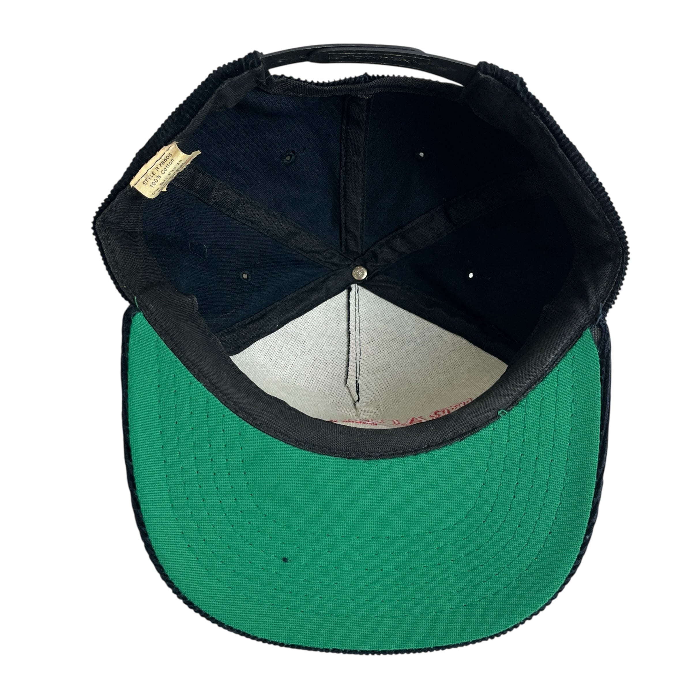かつてアメリカ最大級の規模を誇り、全米の家庭を支えた老舗百貨店「SEARS(シアーズ)」のプライベートブランドである「TRADER BAY」より、1980年代から90年代頃に展開された希少なヴィンテージキャップです。ボディには温かみのあるブルーのコーデュロイ生地が使用され、フロントには鮮やかな赤色の刺繍ロゴが映える、ヴィンテージらしい好配色な一点です。