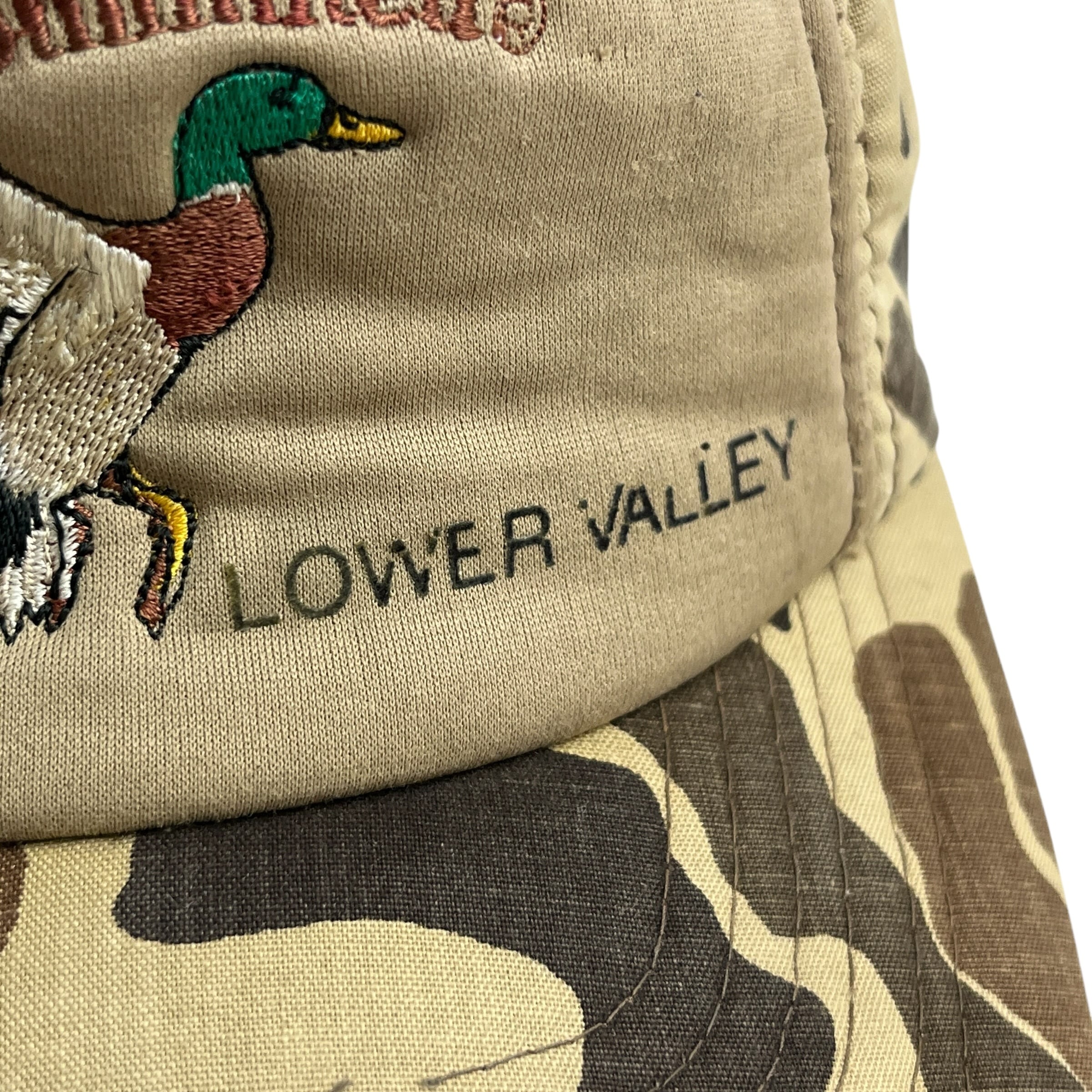 世界最大の湿地帯保護団体であり、多くのアウトドア愛好家に支持される「Ducks Unlimited(ダックス・アンリミテッド)」の1980年代から90年代頃のヴィンテージキャップです。フロントには象徴的なカモの刺繍に加え、下部には「LOWER VALLEY」の文字が刻まれた、希少な地方チャプター(支部)限定のデザインです。