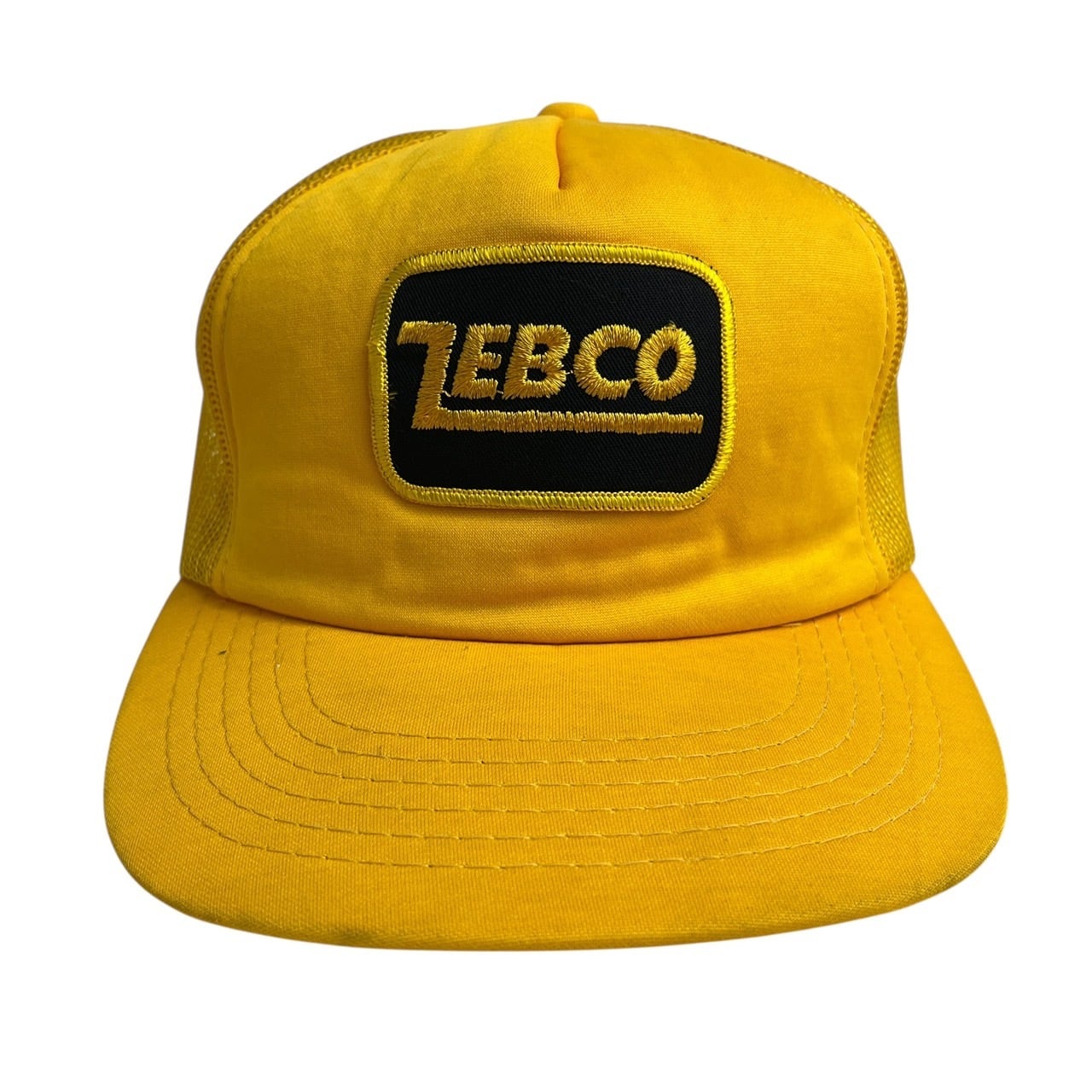 【キャップ/帽子】80-90s ZEBCO (ゼブコ) ビンテージキャップ メッシュキャップ ワッペン 刺繍ロゴ イエロー 黄色