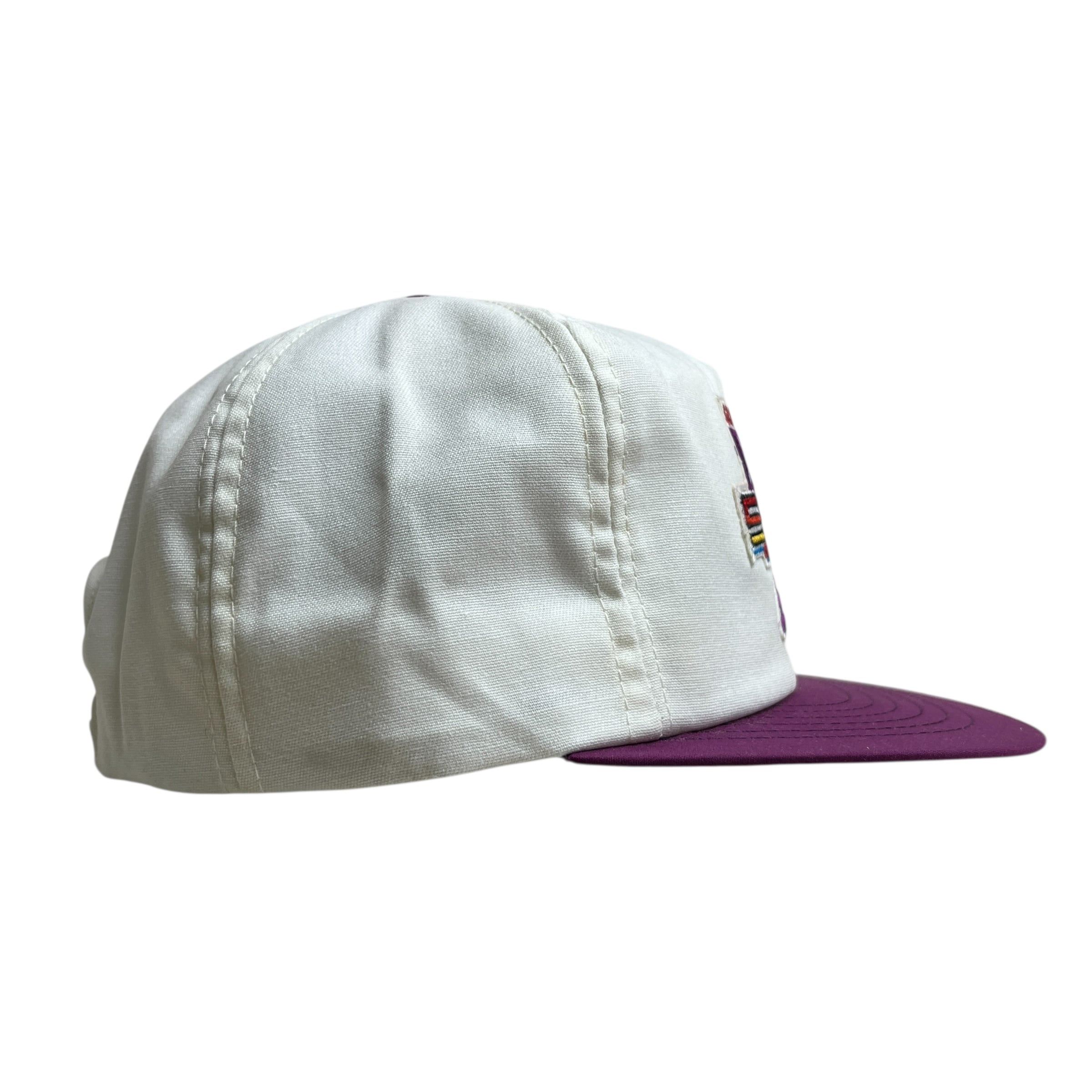 フロントにはイベントの巨大なワッペンが配され、背面には「General Tire」の文字が赤く刺繍されています。アジャスター部分には「Swingster」の刻印があり、希少なアメリカ製(Made in U.S.A.)です。その作りから1980年代から90年代頃のもので間違いなく、白とパープルのバイカラーに豪華なワッペンが映える、コレクタブルな一品です。