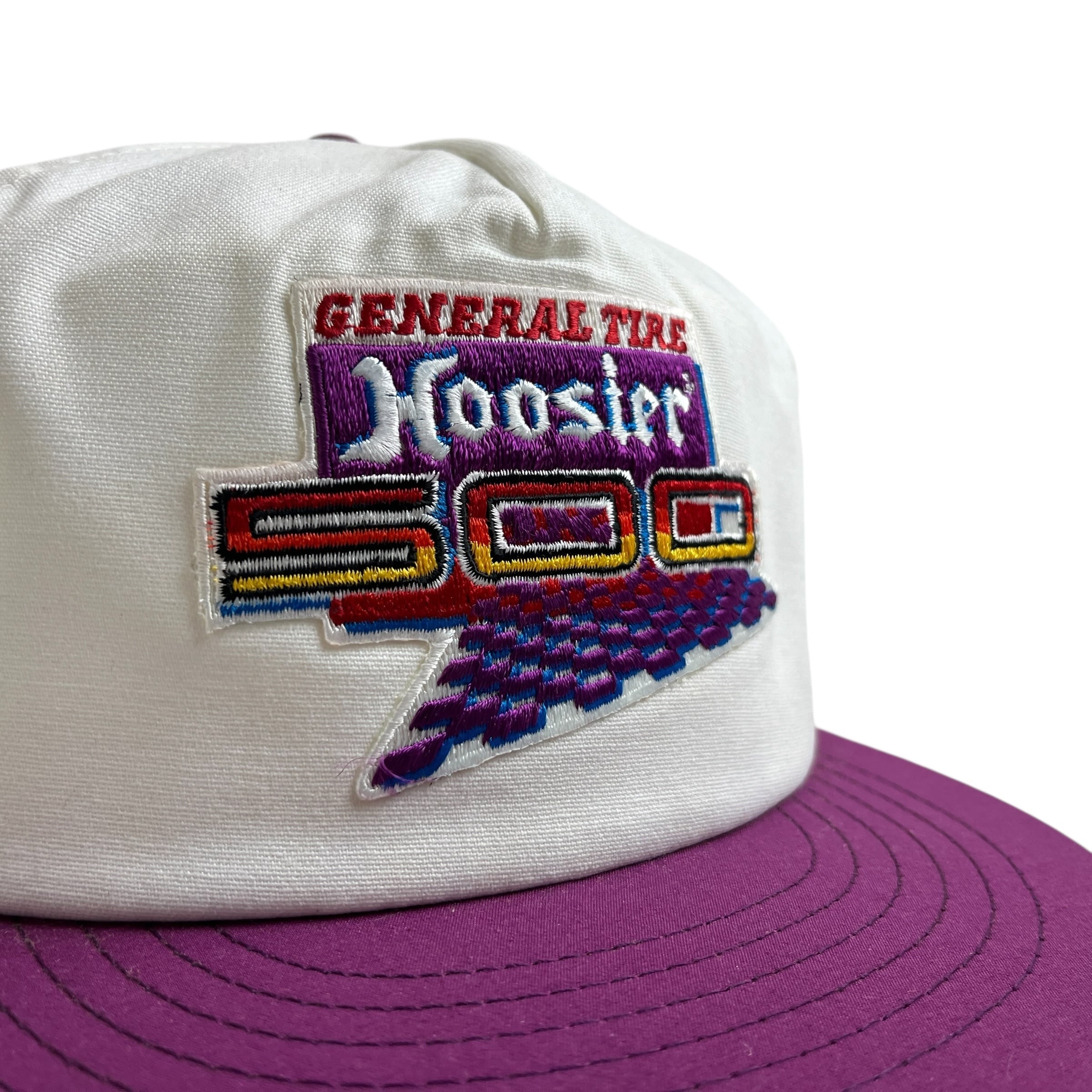 【キャップ/帽子】USA製 80-90s GENERAL TIRE Hoosier 500(ジェネラルタイヤ) ビンテージ トラッカーキャップ パープル 紫 ホワイト 白 US製 アメリカ製 Made in USA
