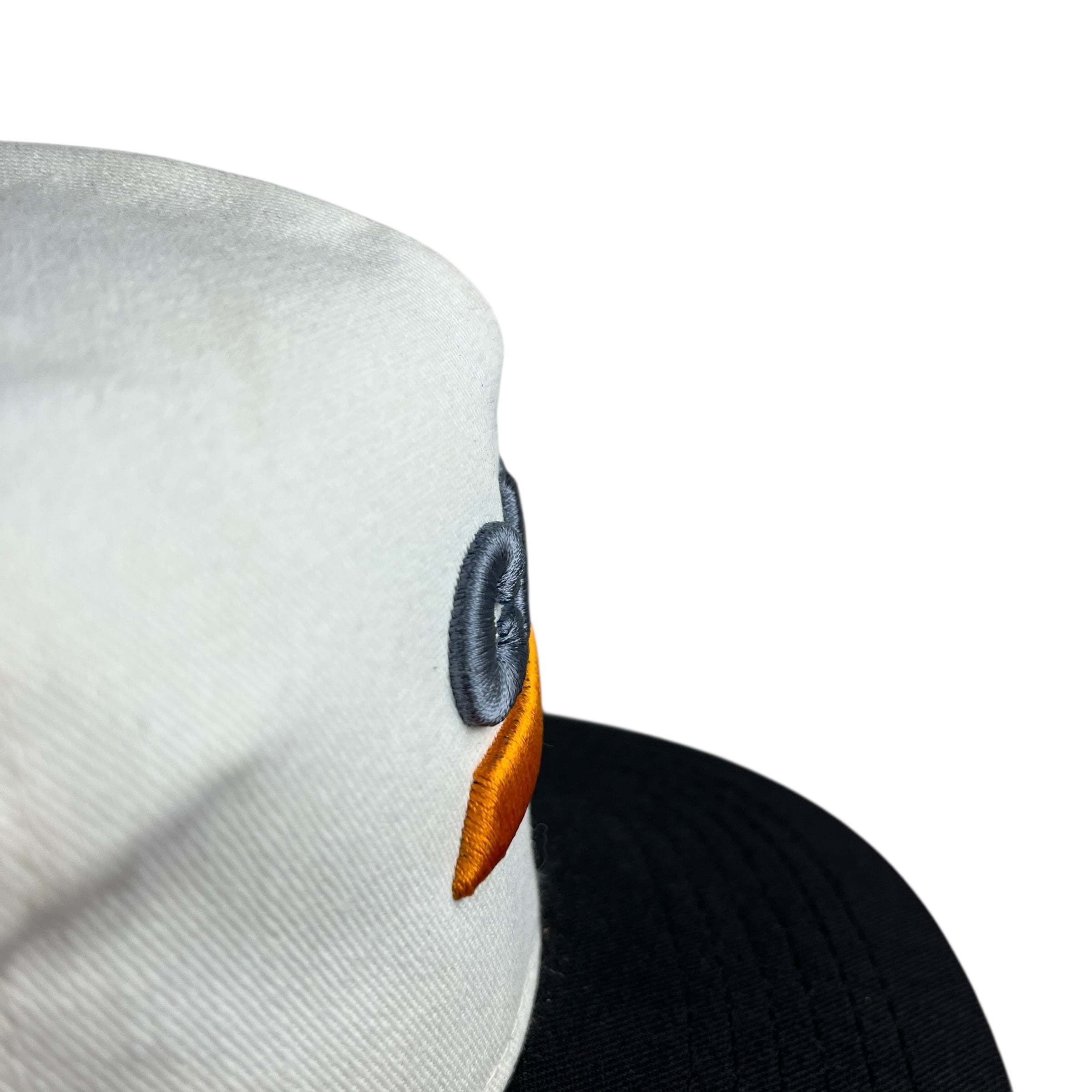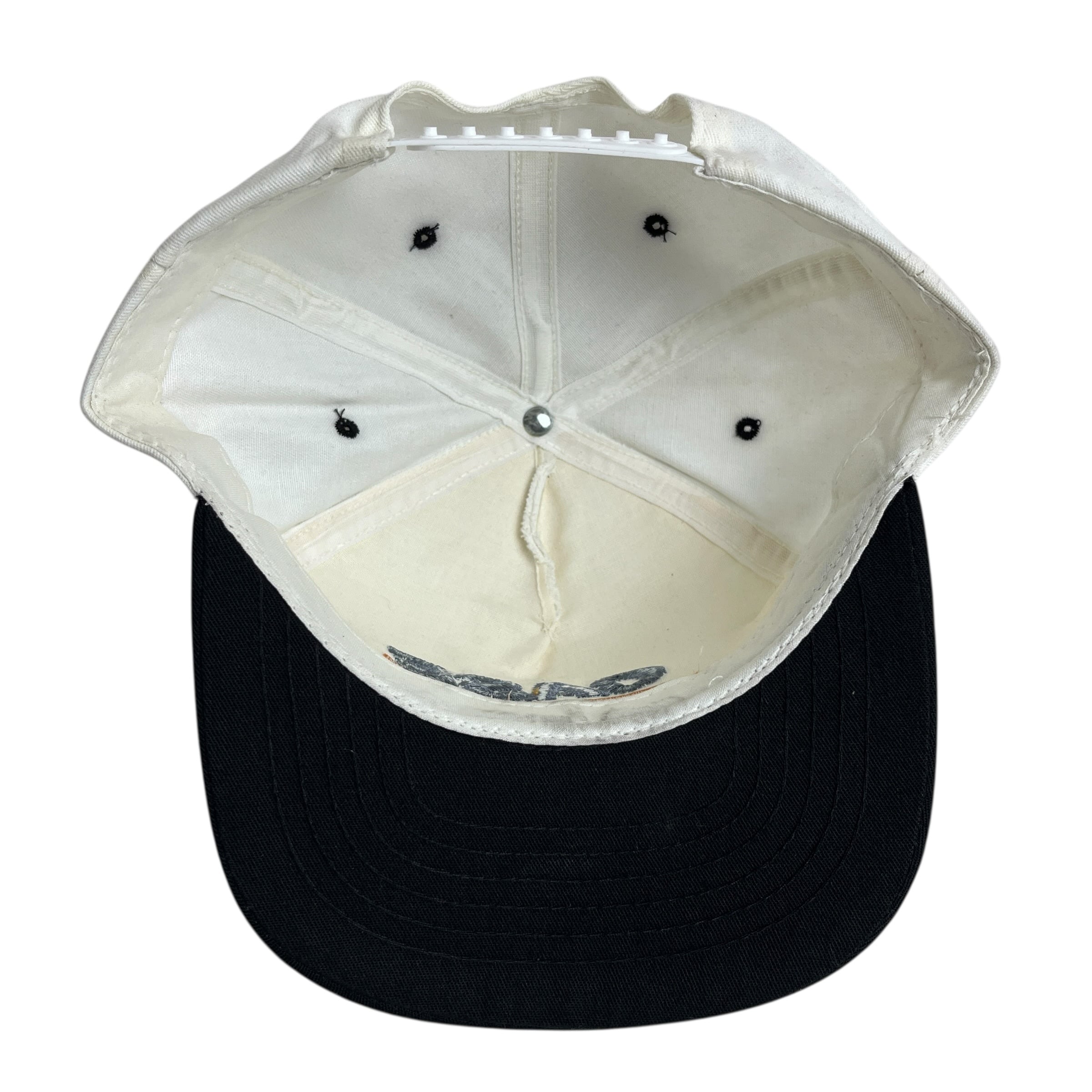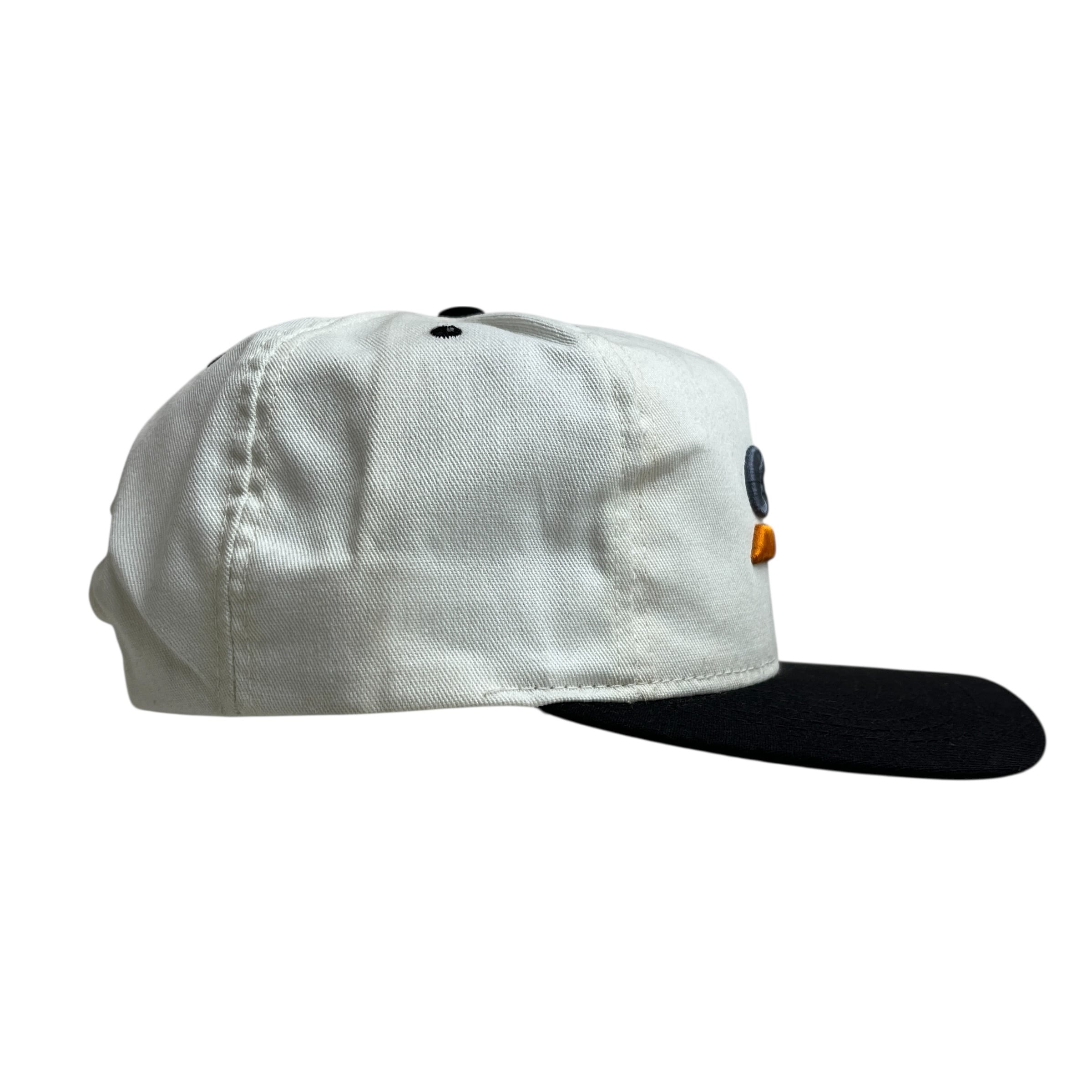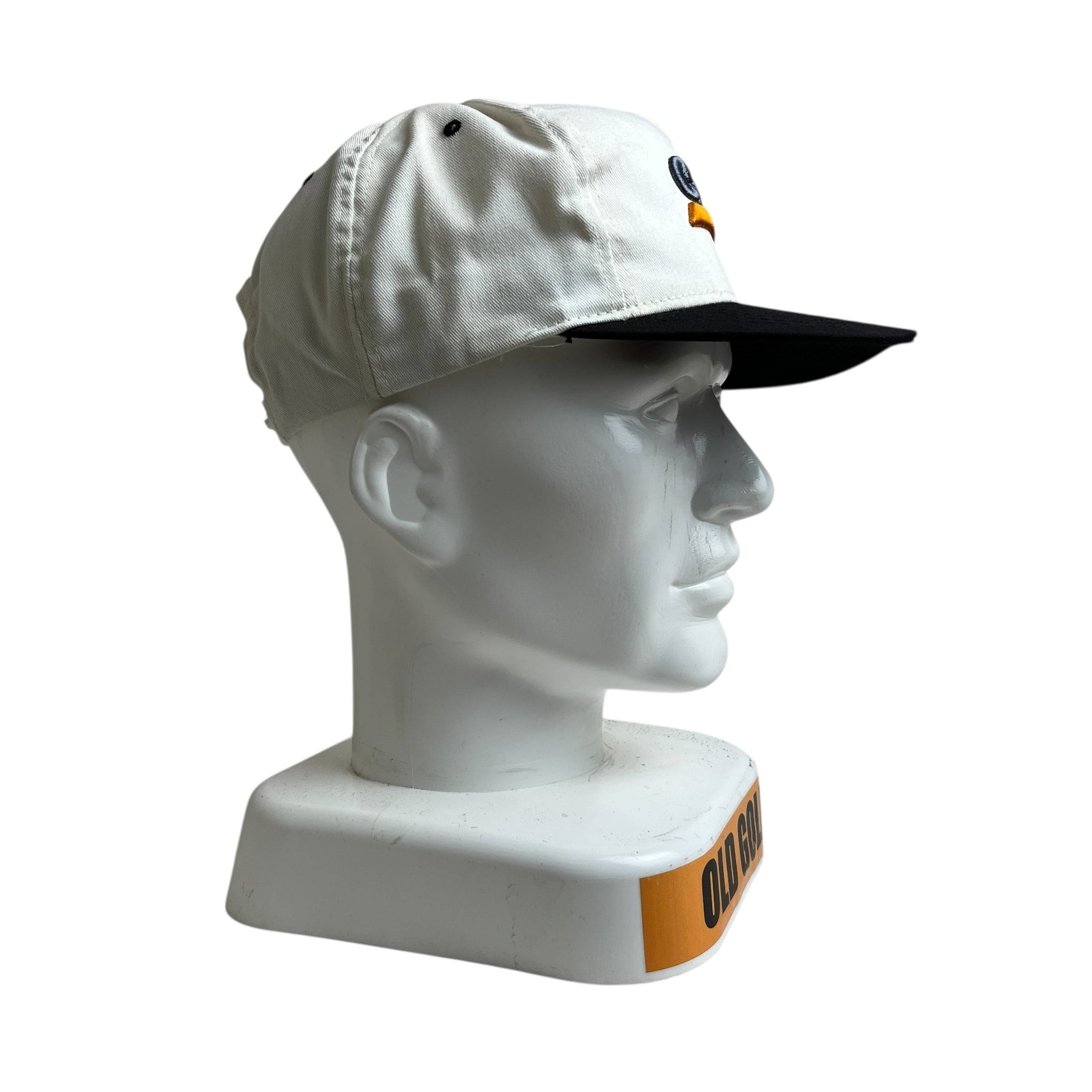 白とブラックのバイカラーボディに、フロントにはグレーの立体的なロゴとブランドカラーであるオレンジのラインが配されています。アジャスター部分には「Swingster」の刻印があり、希少なアメリカ製(Made in U.S.A.)です。その作りから1980年代から90年代頃のもので間違いなく、ワークウェアブランドらしい質実剛健な雰囲気が魅力の一品です。