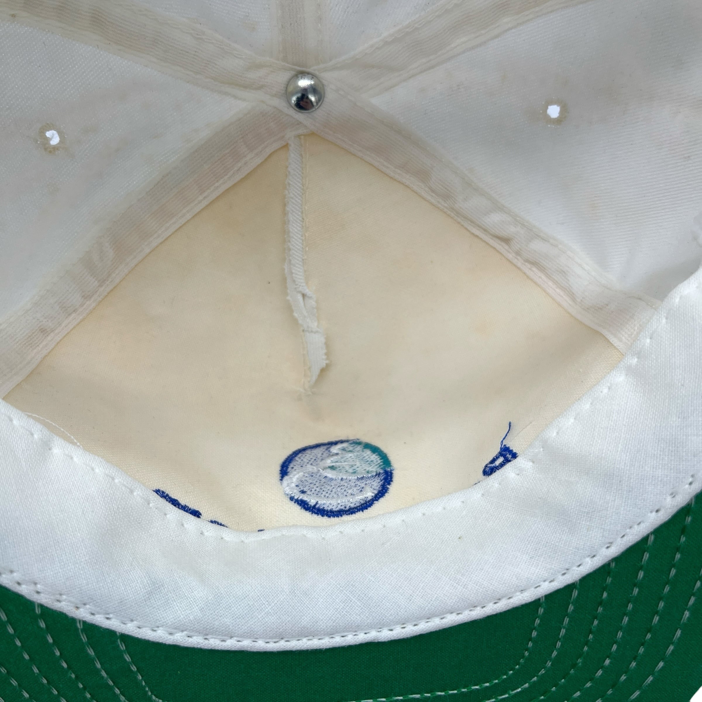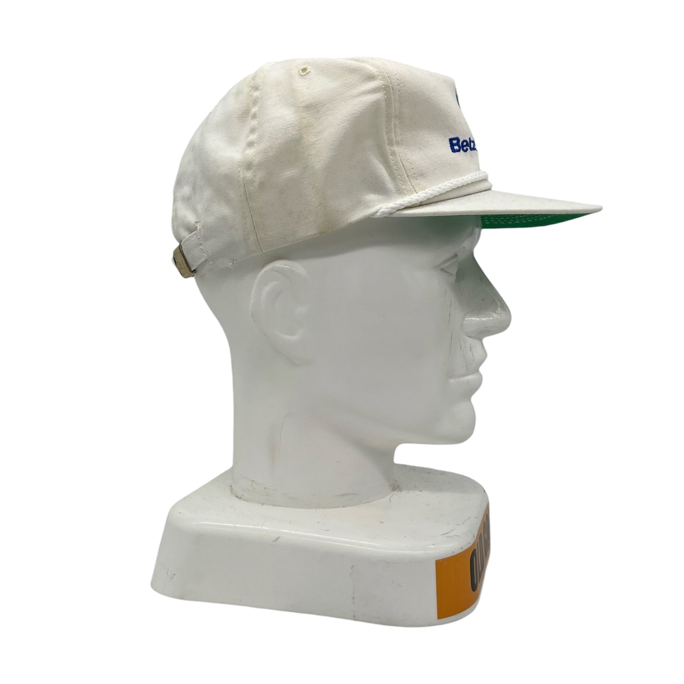同社は1996年にベッツ・ラボラトリーズとディアボーン・ケミカルが合併して誕生した水処理技術の世界的リーダーで、現在はGEの水処理部門を経てスエズの一部となっています。ホワイトボディにフロントのロープ装飾、鮮やかなグリーンのアンダーバイザーがクラシックな雰囲気を演出。希少なMADE IN U.S.A.(アメリカ製)かつ、当時の企業ロゴが綺麗に残ったコレクターズアイテムです。