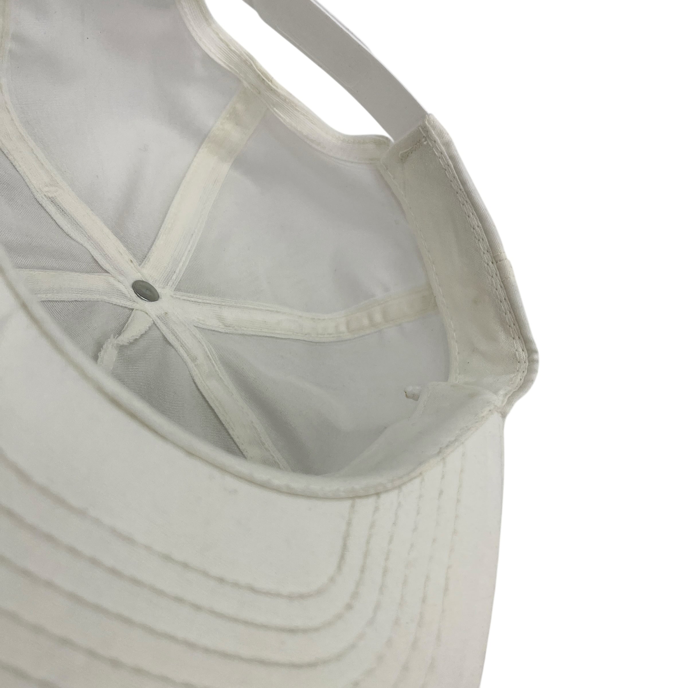 ホワイトボディにグリーンの「IMC」ロゴが力強く刺繍されており、農業・肥料メーカーらしい質実剛健なデザインが特徴です。フロントのロープ装飾も良いアクセントになっています。ボディはSwingster製で、アジャスター部分の刻印が示す通り、希少なMADE IN U.S.A.(アメリカ製)です。