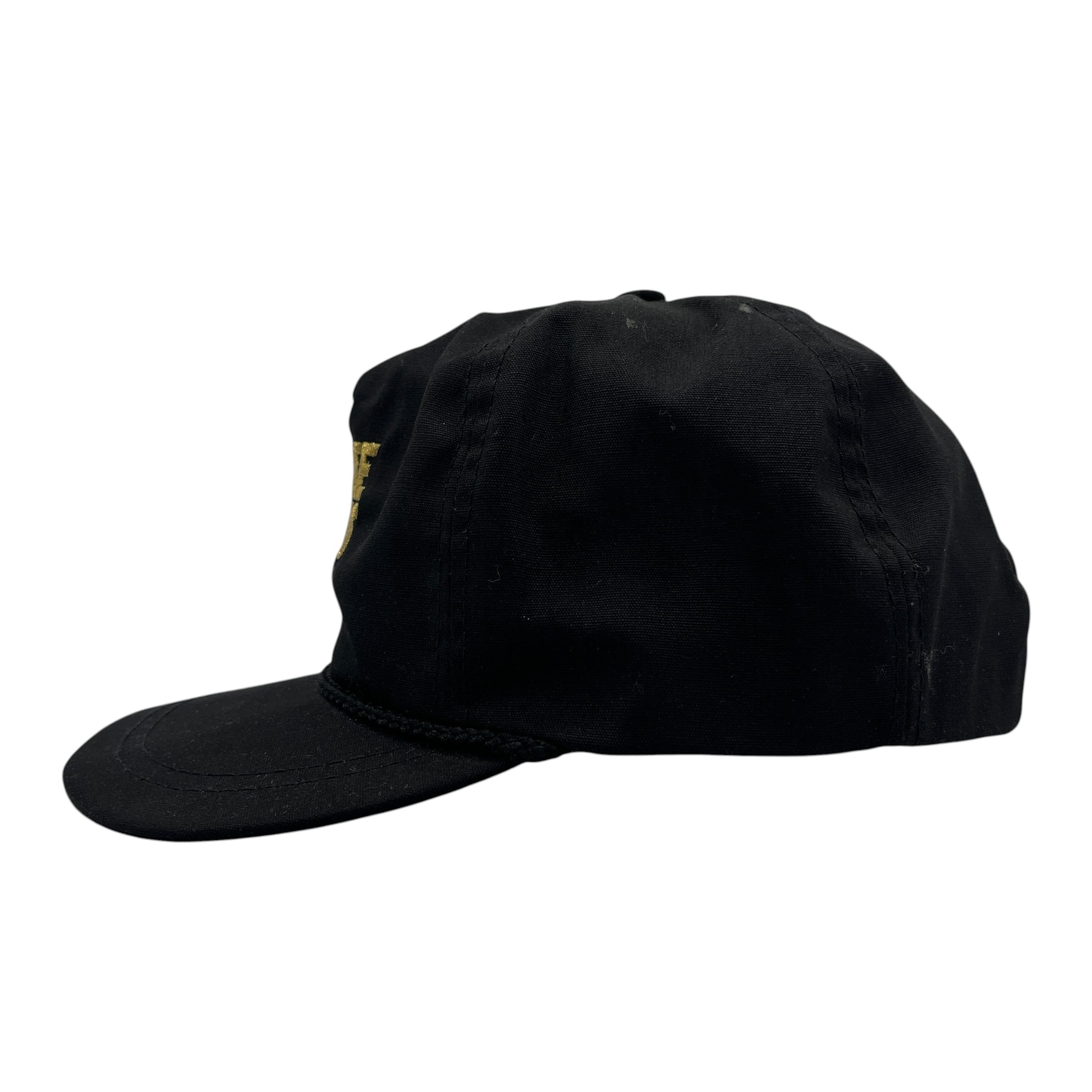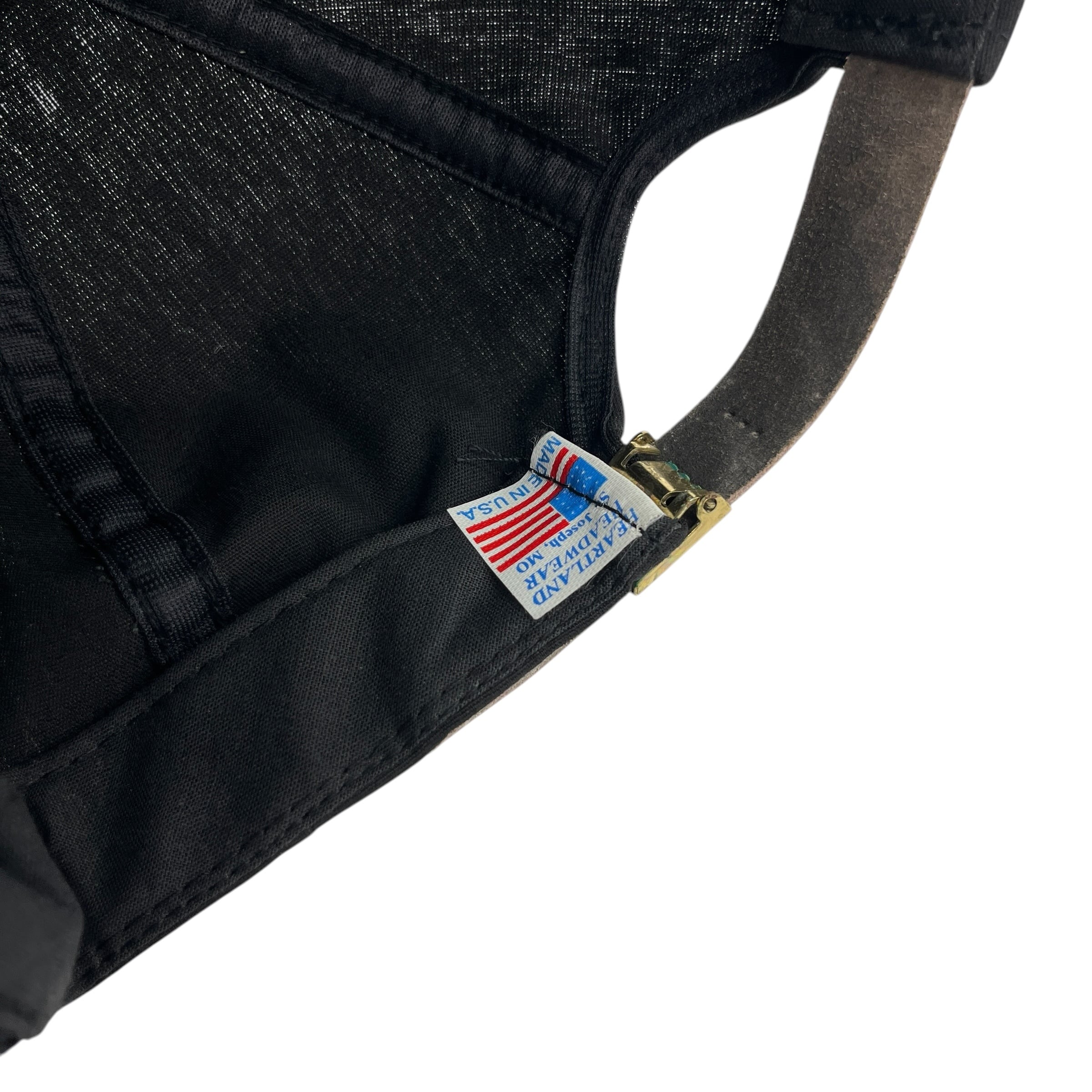 ブラックのボディにロープ付きのバイザーなど、現行品にはないヴィンテージ特有のディテールが詰まったアイテム。古着好きの方はもちろん、アメリカのローカルな企業物をお探しの方に最適です。