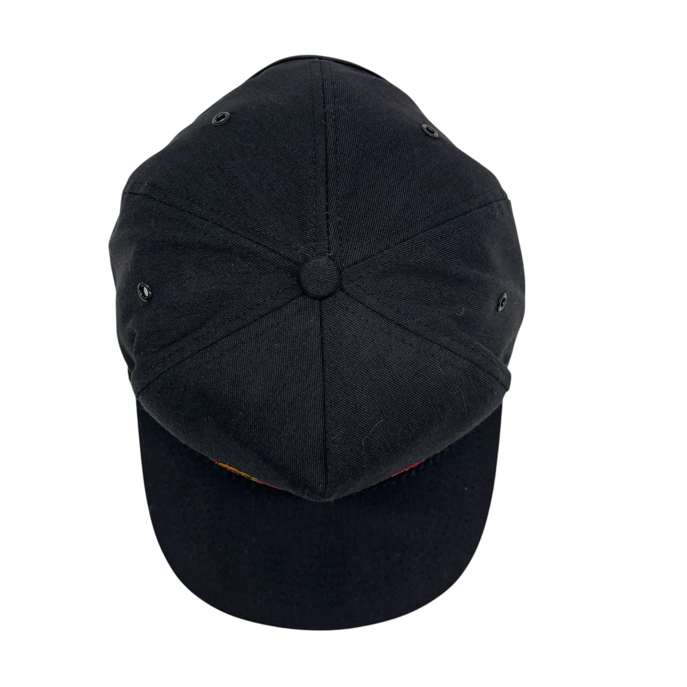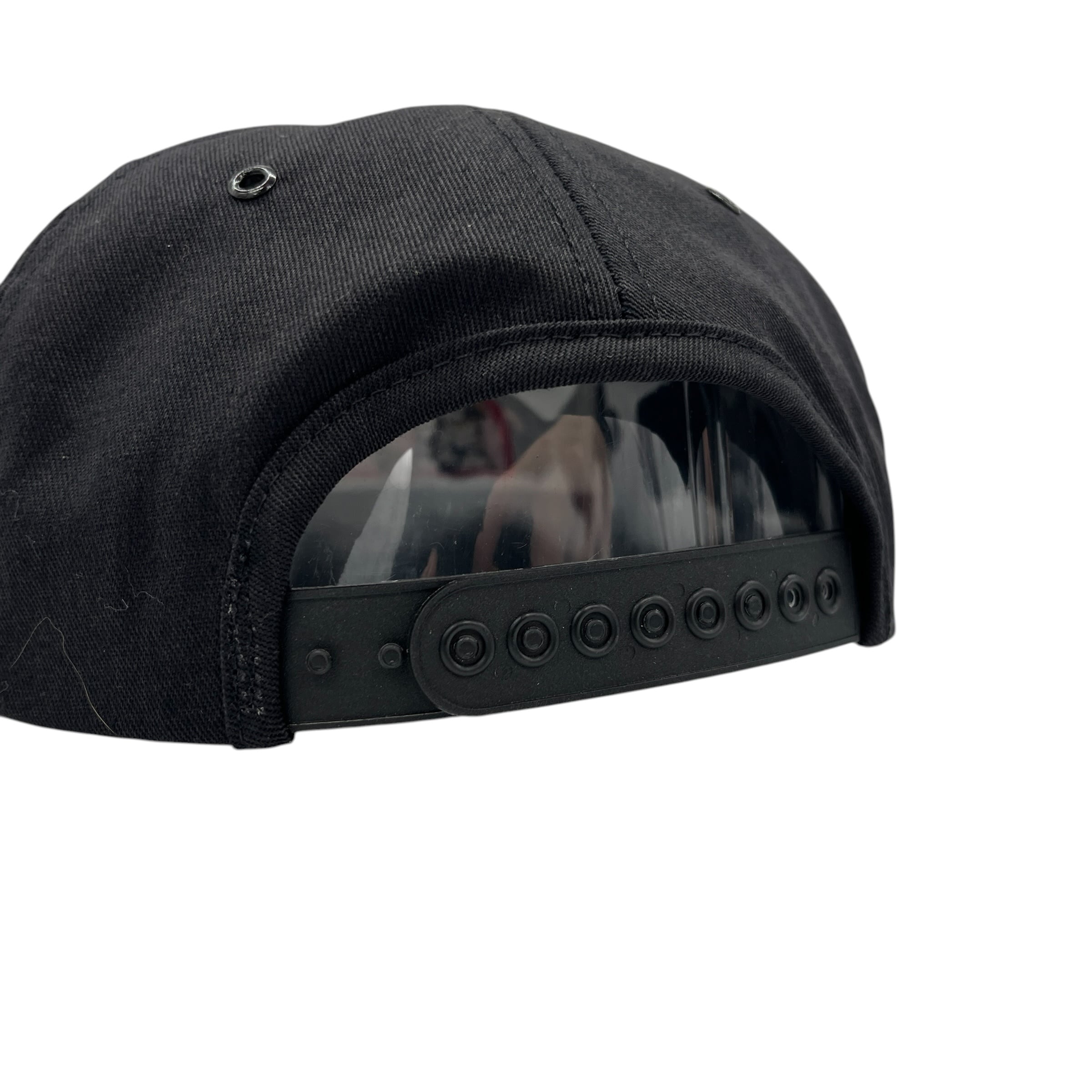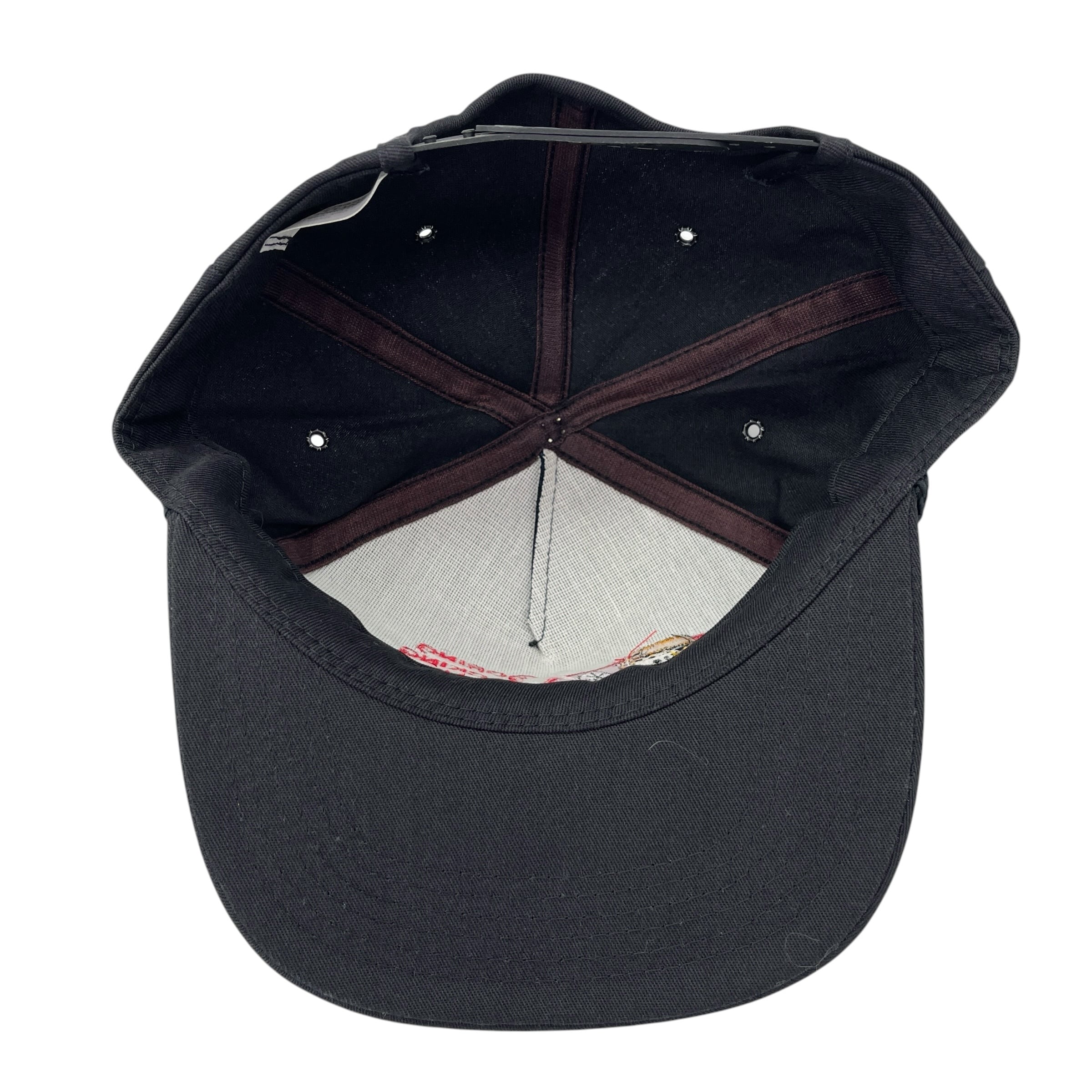 インディアナ州に拠点を置くトンネル掘削専門企業「MIDWEST MOLE, INC.」のビンテージ・スナップバックキャップです。ブラックのボディに、シャベルを抱えヘルメットを被ったモグラのキャラクターと、業務内容である「BORING(ボーリング)」「JACKING(ジャッキング)」「TUNNELING(トンネル掘削)」の文字が鮮やかな刺繍で施されています。内側のタグにはミネソタ州オースティンの「ROBERT'S SPECIALTY CO.」の社名があり、アジャスター部分には「MADE IN U.S.A.」の刻印が確認できる希少なアメリカ製アイテムです。80年代から90年代頃の無骨なワークスタイルの雰囲気と、企業物ならではのユニークなキャラクターデザインが融合した、コレクター必見の一品です。