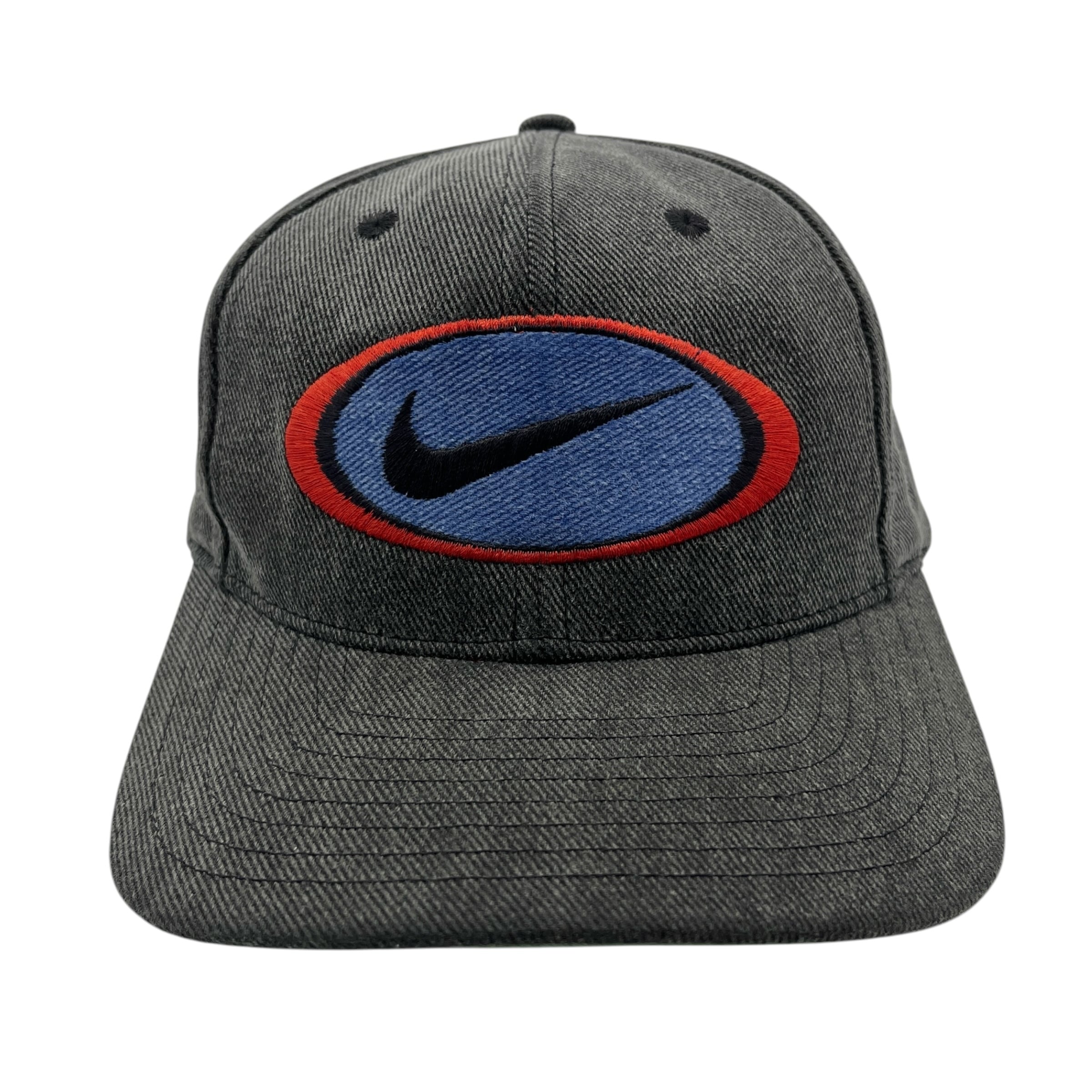 【キャップ/帽子】90s NIKE(ナイキ)オーバルロゴ ビンテージ キャップ ダークグレー レッド 赤 ブルー 青