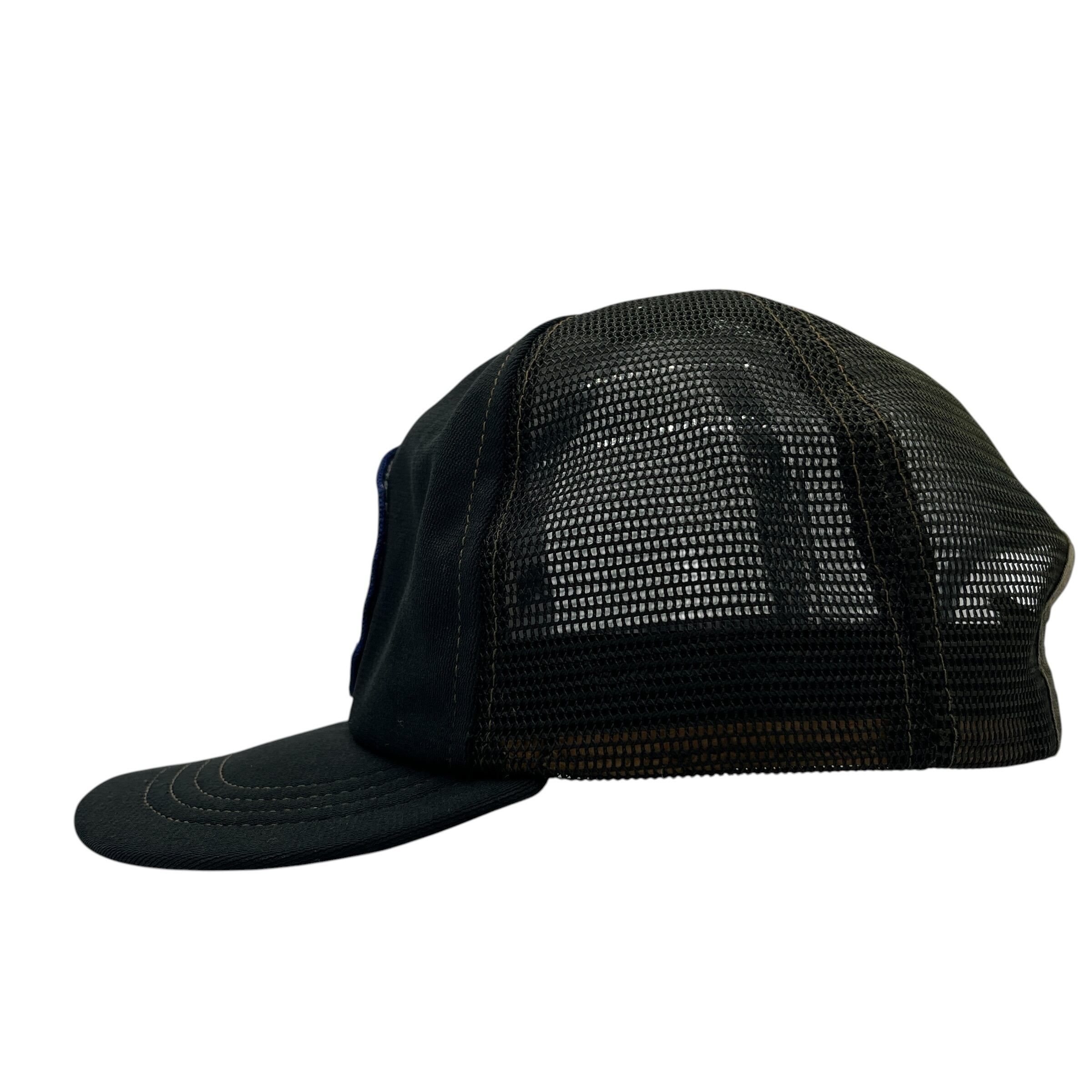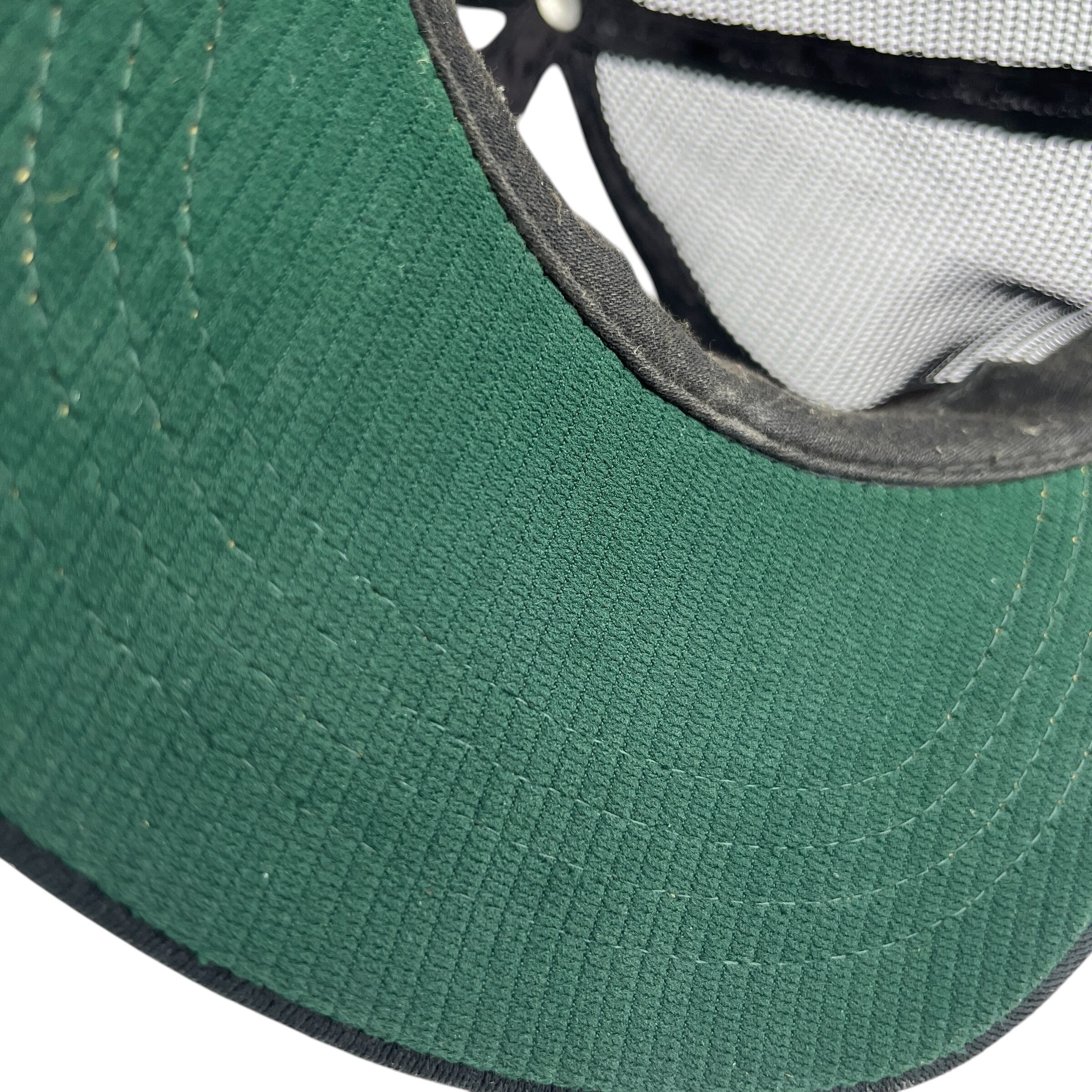 ディテールから1980年代〜90年代頃のものと推測されます。ボディは使い勝手の良いブラックで、ツバ裏はヴィンテージらしいグリーンの切り替え仕様(コーデュロイのようなツバ裏には珍しい素材です)。プラパーツ部分に「MADE IN USA」の刻印もしっかり残っています。