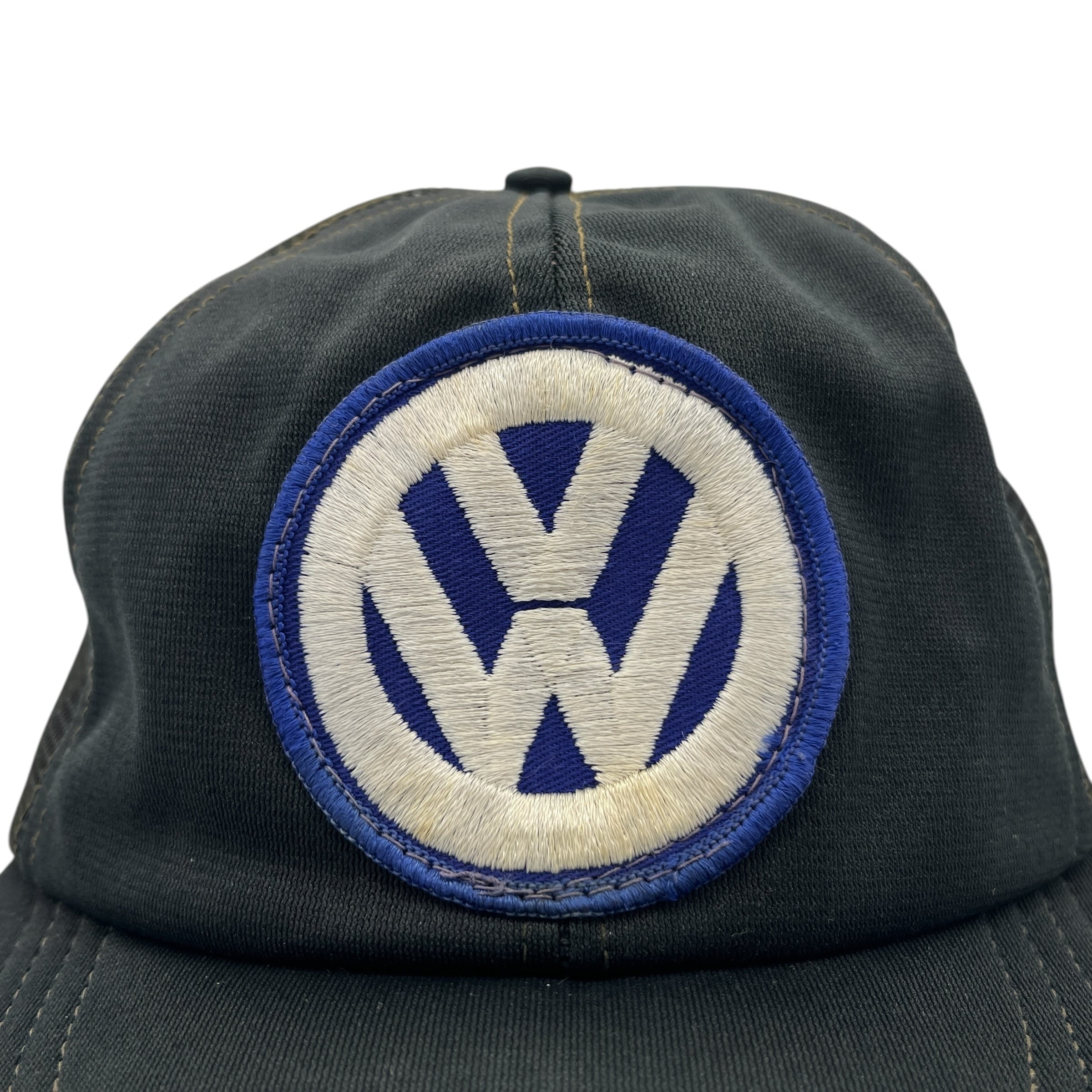 【キャップ/帽子】80-90s USA製 Volkswagen(フォルクスワーゲン)ビンテージ ワッペン メッシュキャップ ブラック 黒 ネイビー 紺 ホワイト 白