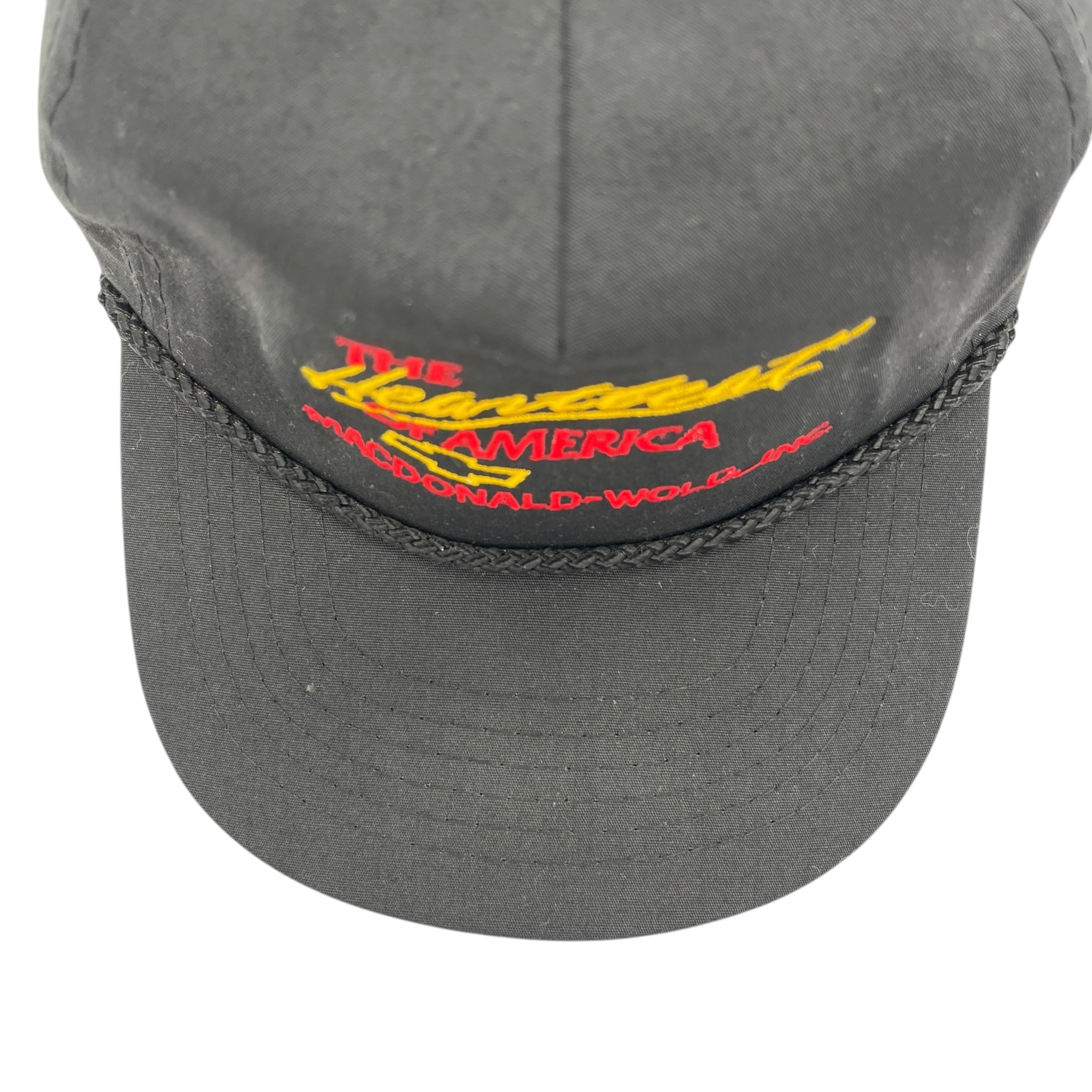 1980年代後半から90年代にかけてシボレーが使用した伝説的なキャッチコピー、「The Heartbeat of America」の刺繍が施されたヴィンテージ・ディーラーキャップです。