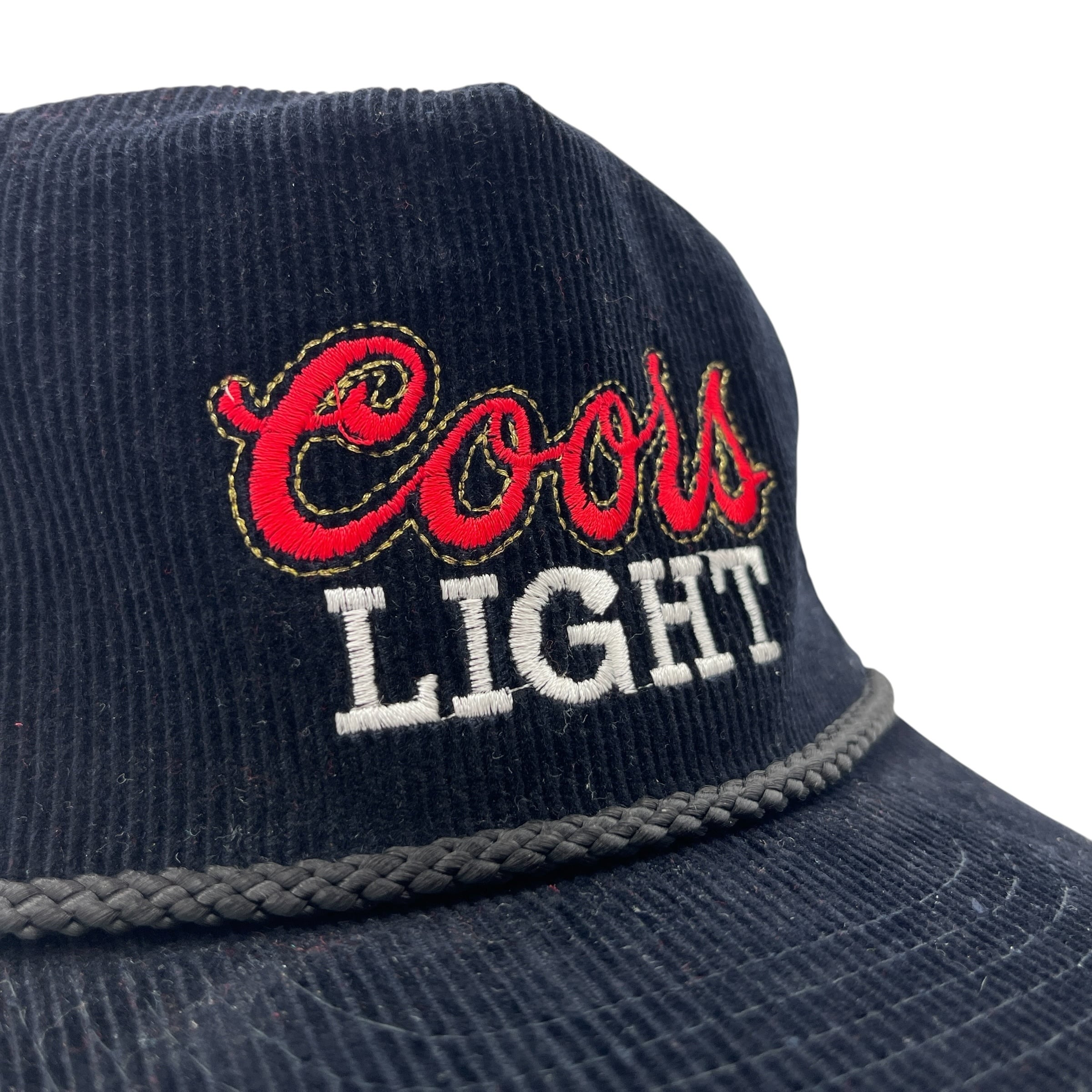 【キャップ/帽子】80-90s Coors Light(クアーズライト)ビンテージ コーデュロイキャップ 刺繍 ロープ ブラック 黒 レッド 赤 ホワイト 白