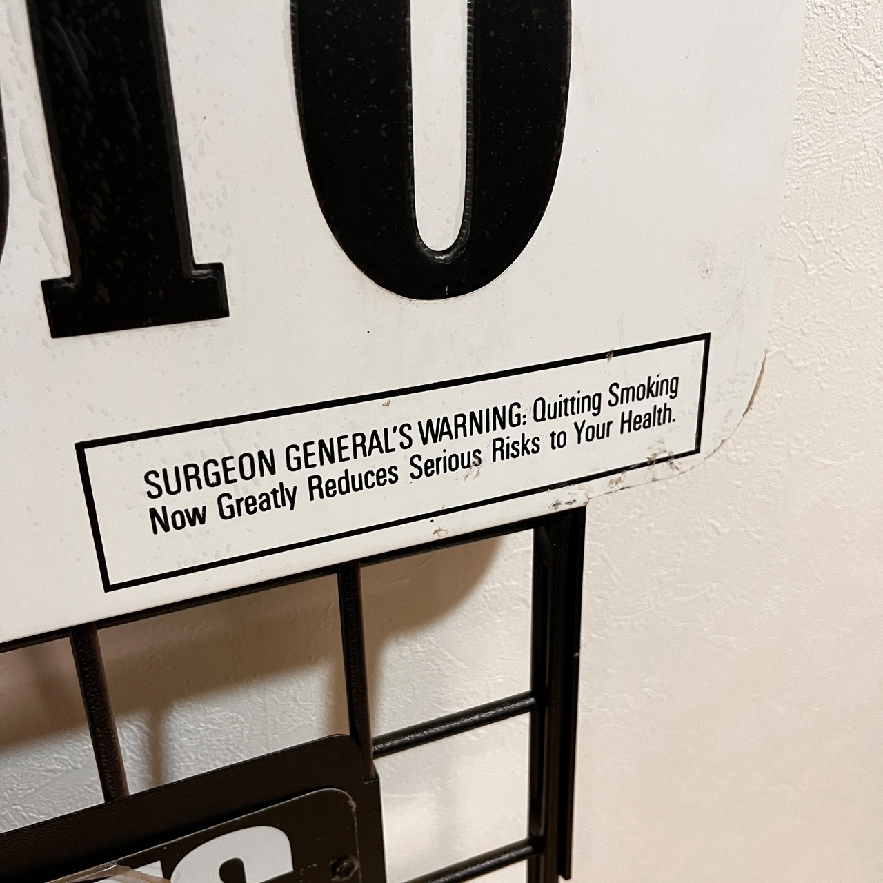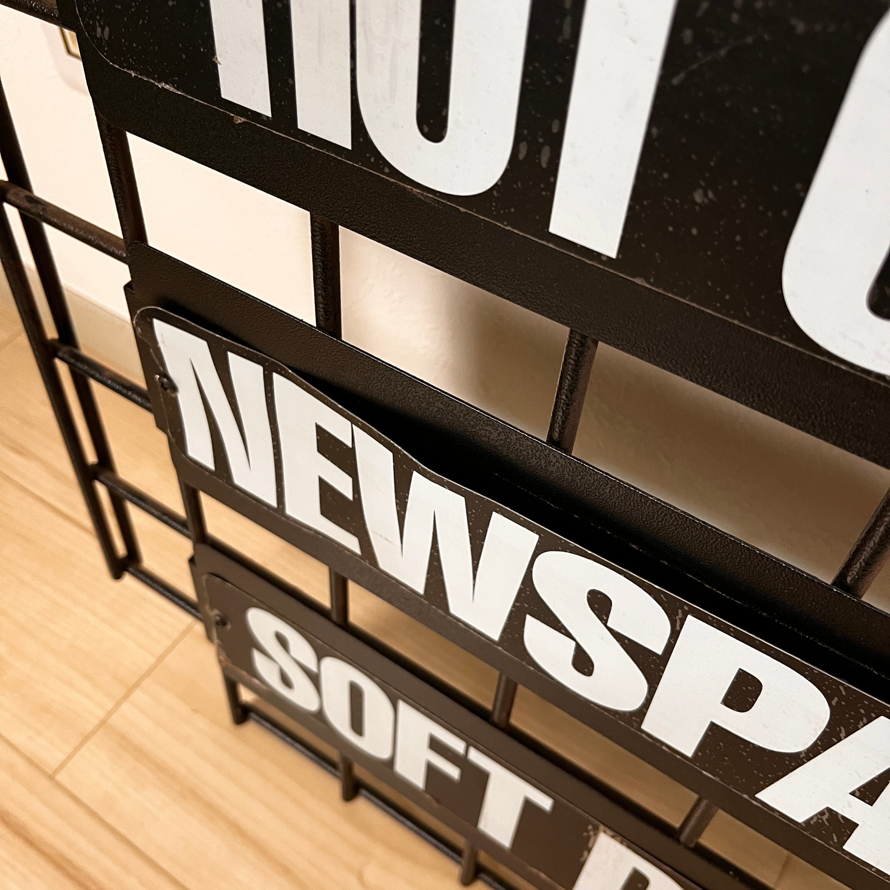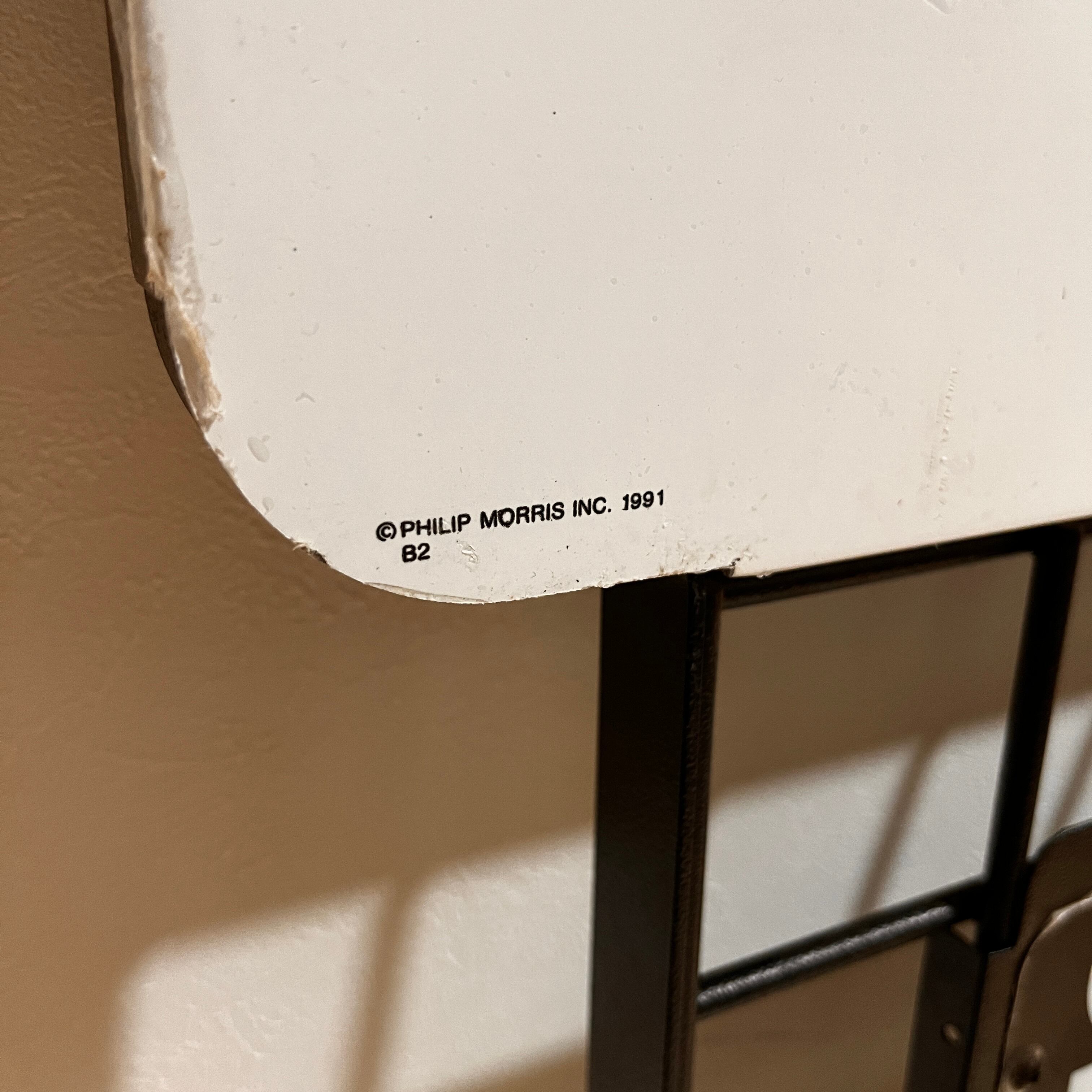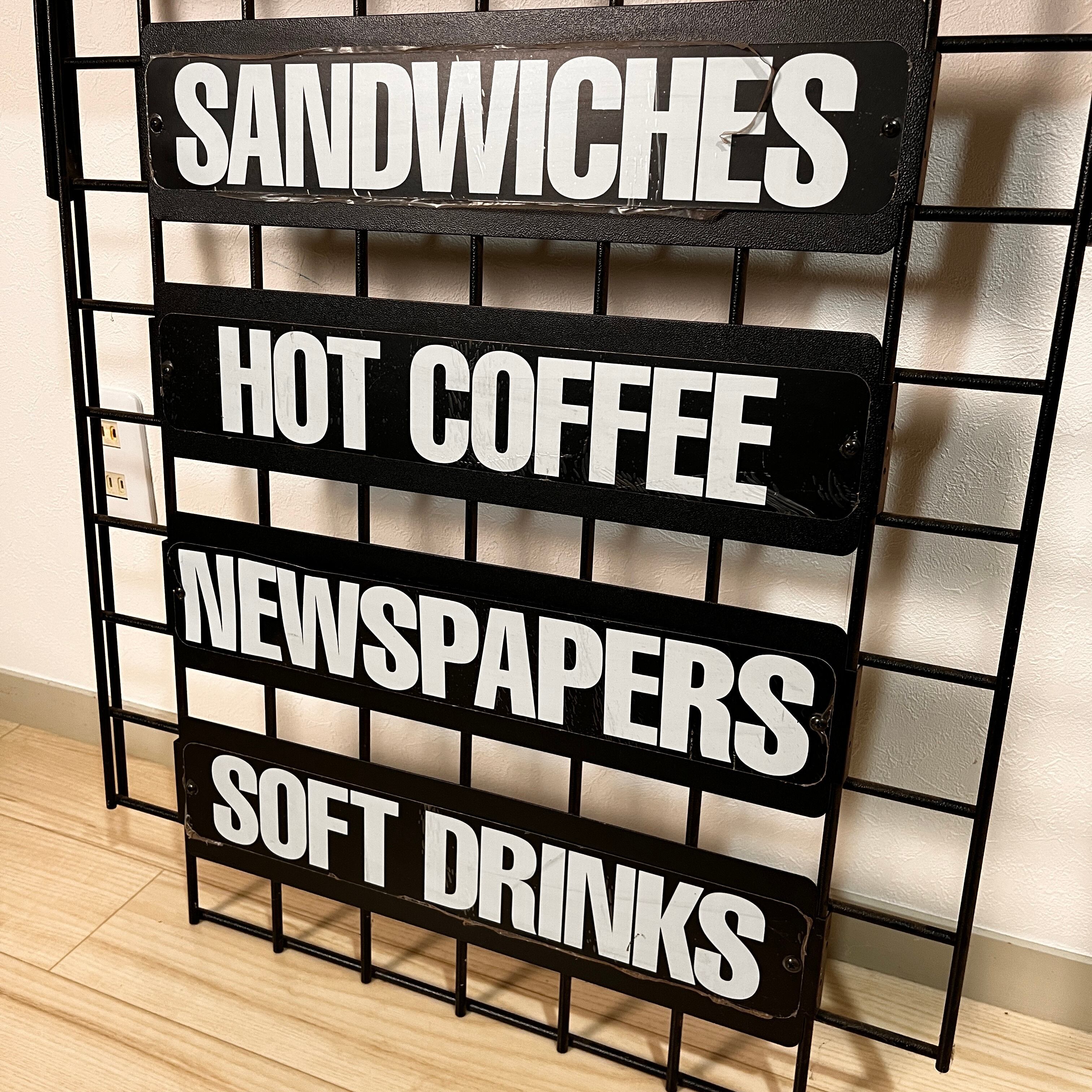 こちらはアメリカで買い付けました、1991年製のマルボロのアドバタイジングサインになります。Sandwiches, Hot Coffee, News, Paper Soft Drinkの文字がたまりませんね!これから推測するに朝食メニューがありマルボロの取り扱いもあるレストランで用いられていたものと思われます。エンボス加工も施されており、重厚感もあり、ハイクオリティの商品です。この綺麗な状態で見つかることは今後なかなかないと思いますので、是非この機会にご購入ください。