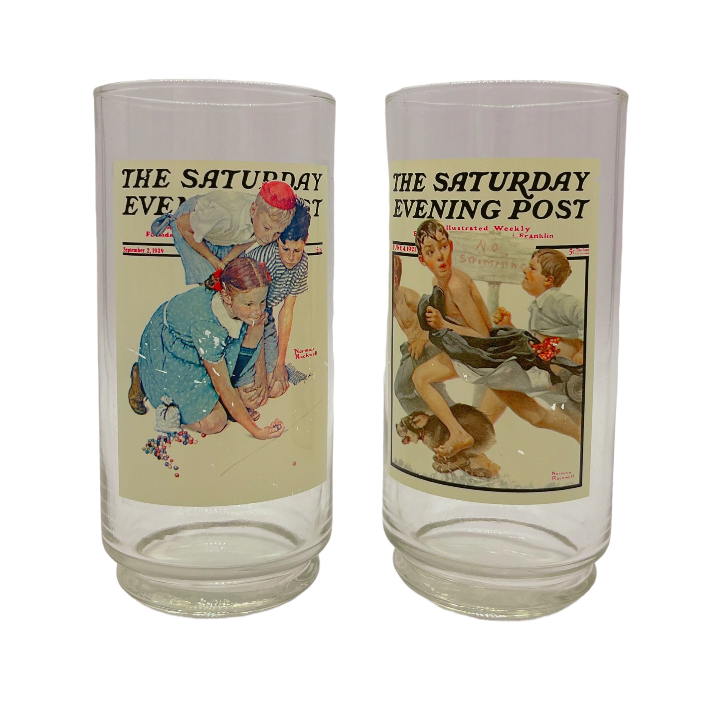 【グラス】2個セット! " THE Saturday Evening Post by Norman Rockwell " ビンテージグラス 01
