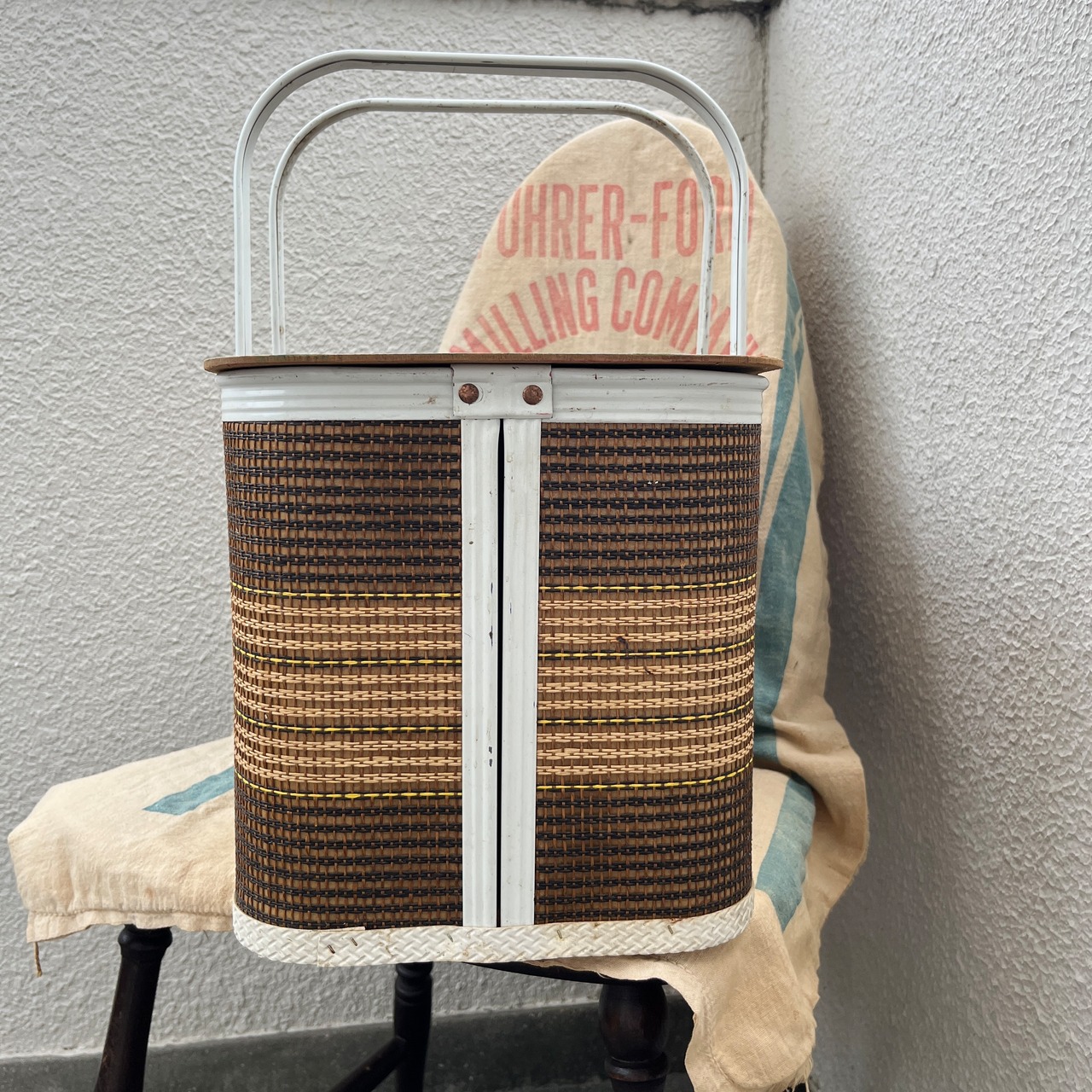 【バスケット】1960s " REDMON社製 ピクニックバスケット " レッドモン Picnic Basket ブラウン ホワイト