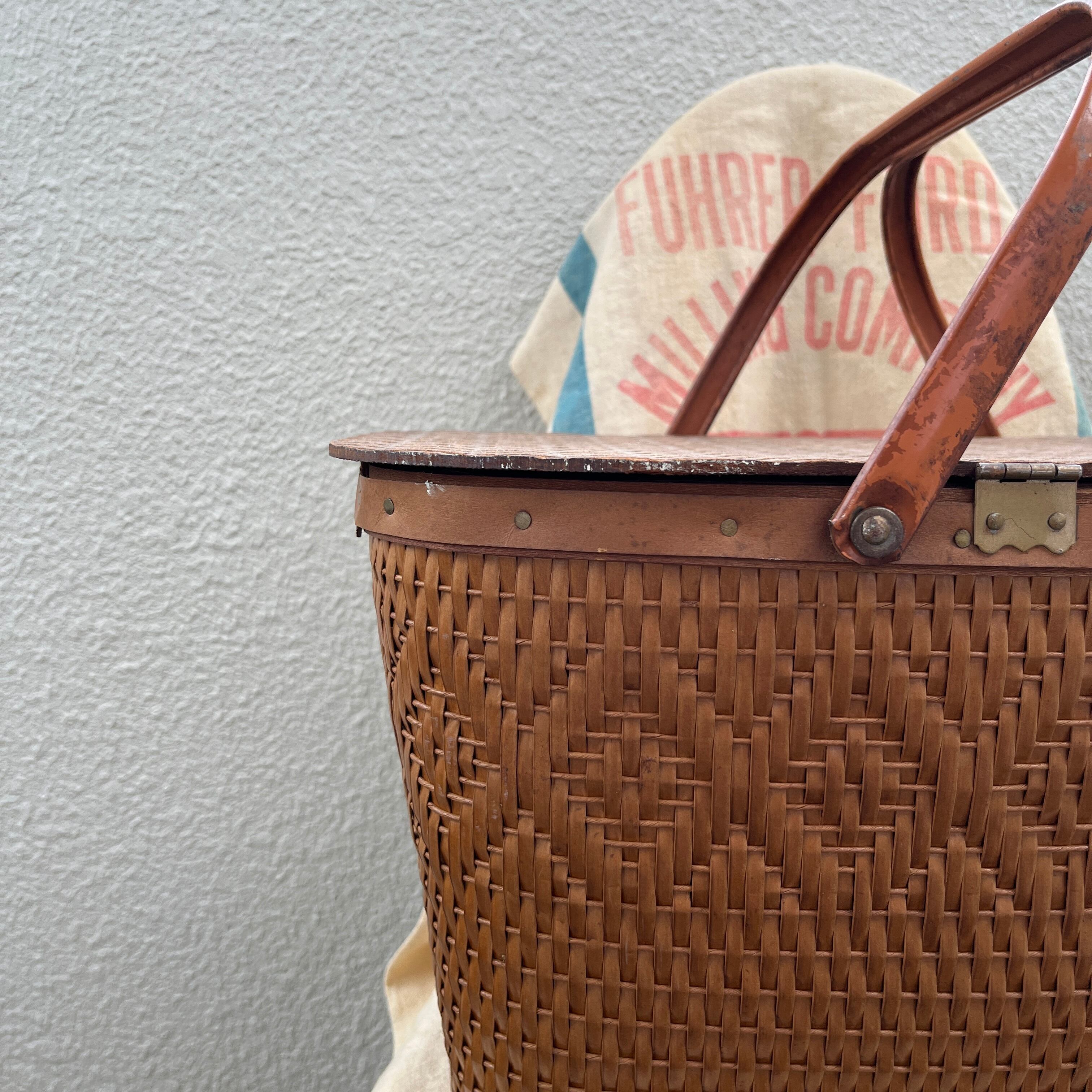 【バスケット】1960s " REDMON社製 ピクニックバスケット " レッドモン Picnic Basket ブラウン ウッド