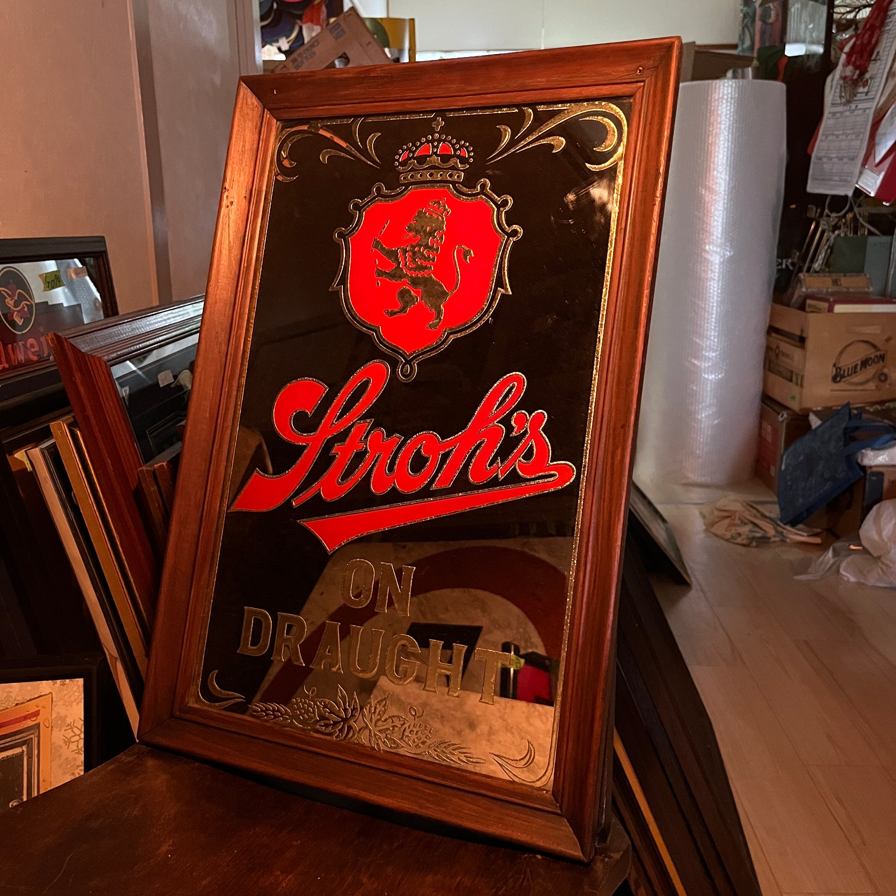 【パブミラー】1980s " Stroh's (ストローズ) Pub Mirror " Bar Mirror バーミラー ゴールド レッド