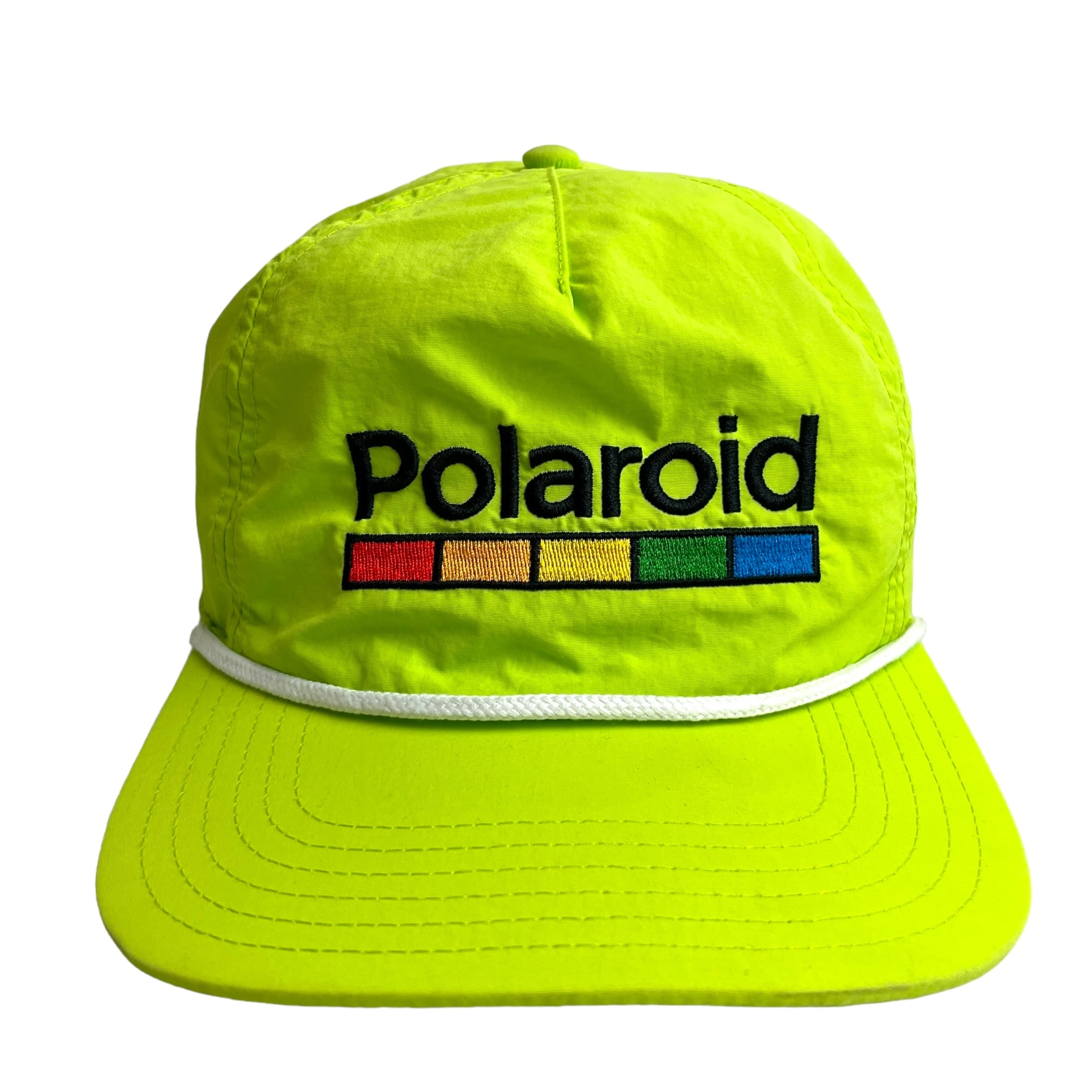 【キャップ / 帽子】Polaroid (ポラロイド) フィルムカメラ 蛍光イエロー ビンテージ ナイロンキャップ カラフル マルチカラー 古着 アメカジ