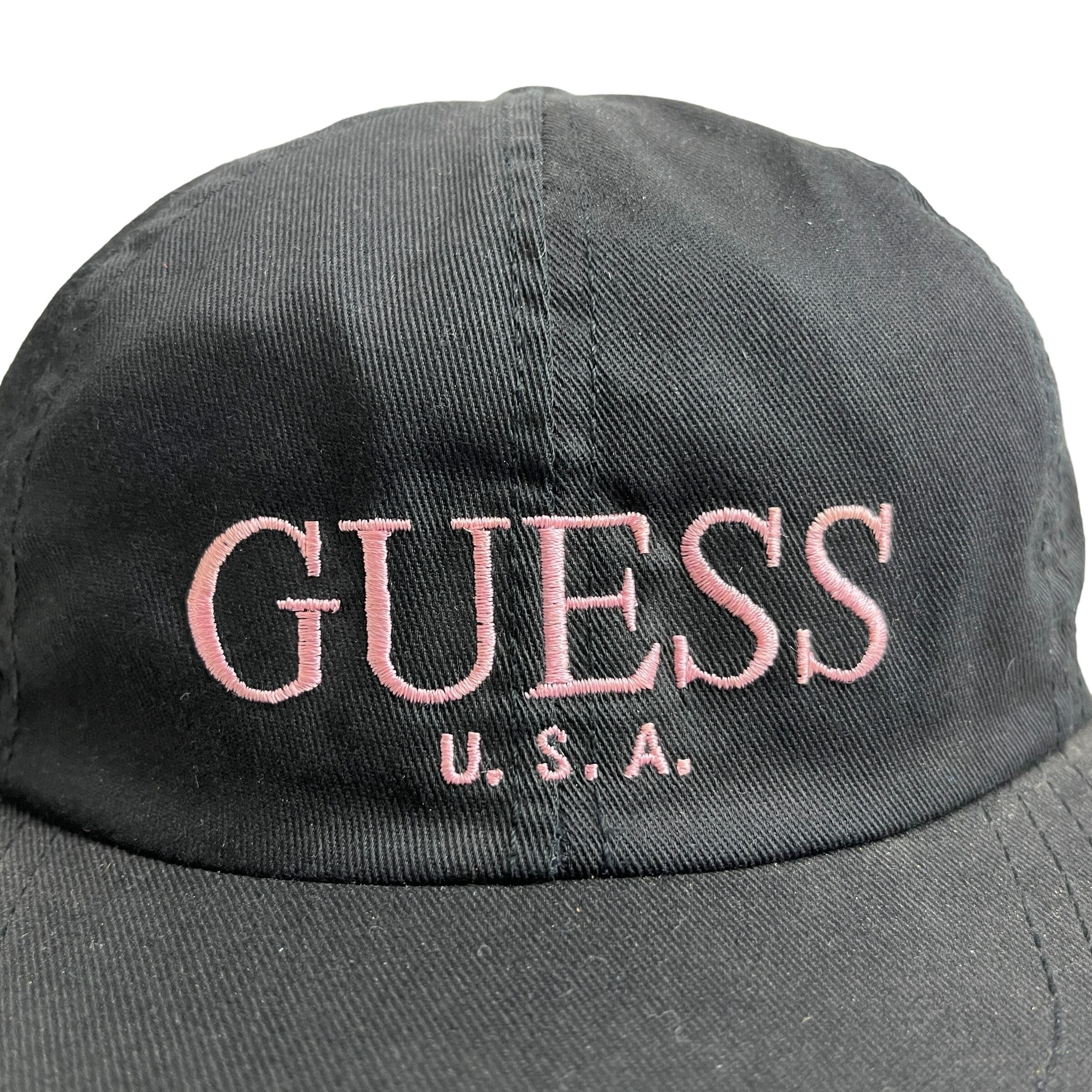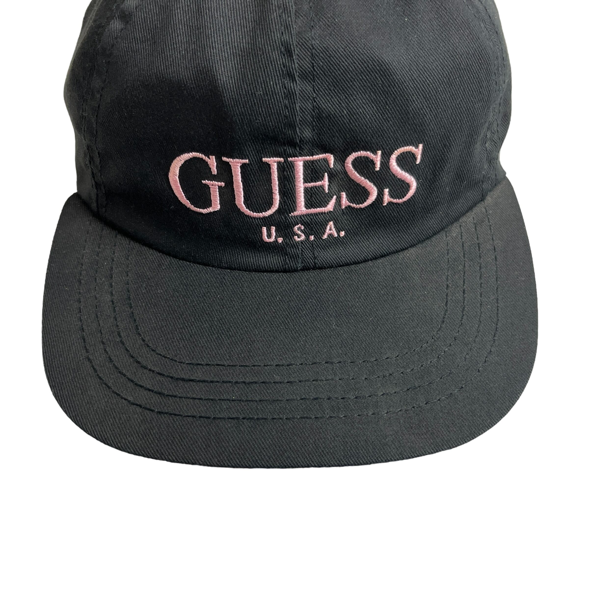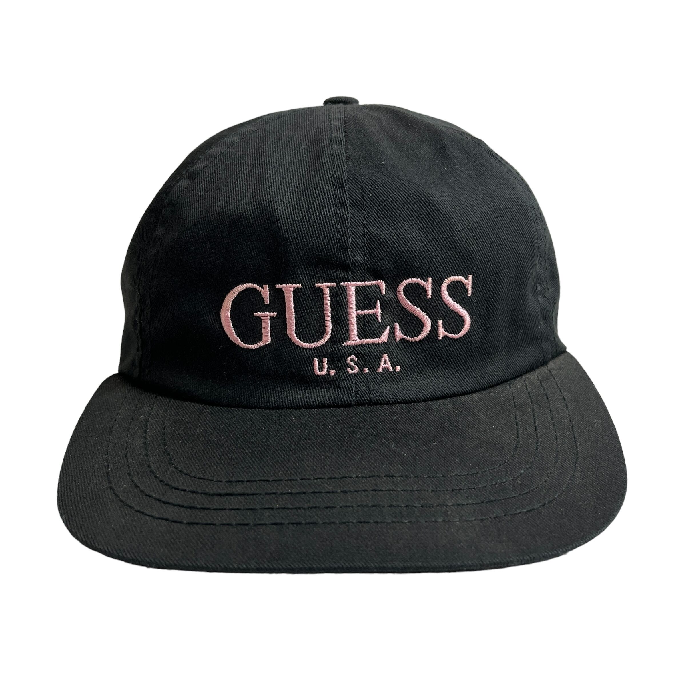 【キャップ/帽子】アメリカ製 GUESS USA (ゲス ユーエスエー) ビンテージ キャップ ブラック ピンク 黒 刺繍 USA製 US製 Made in USA 激レア