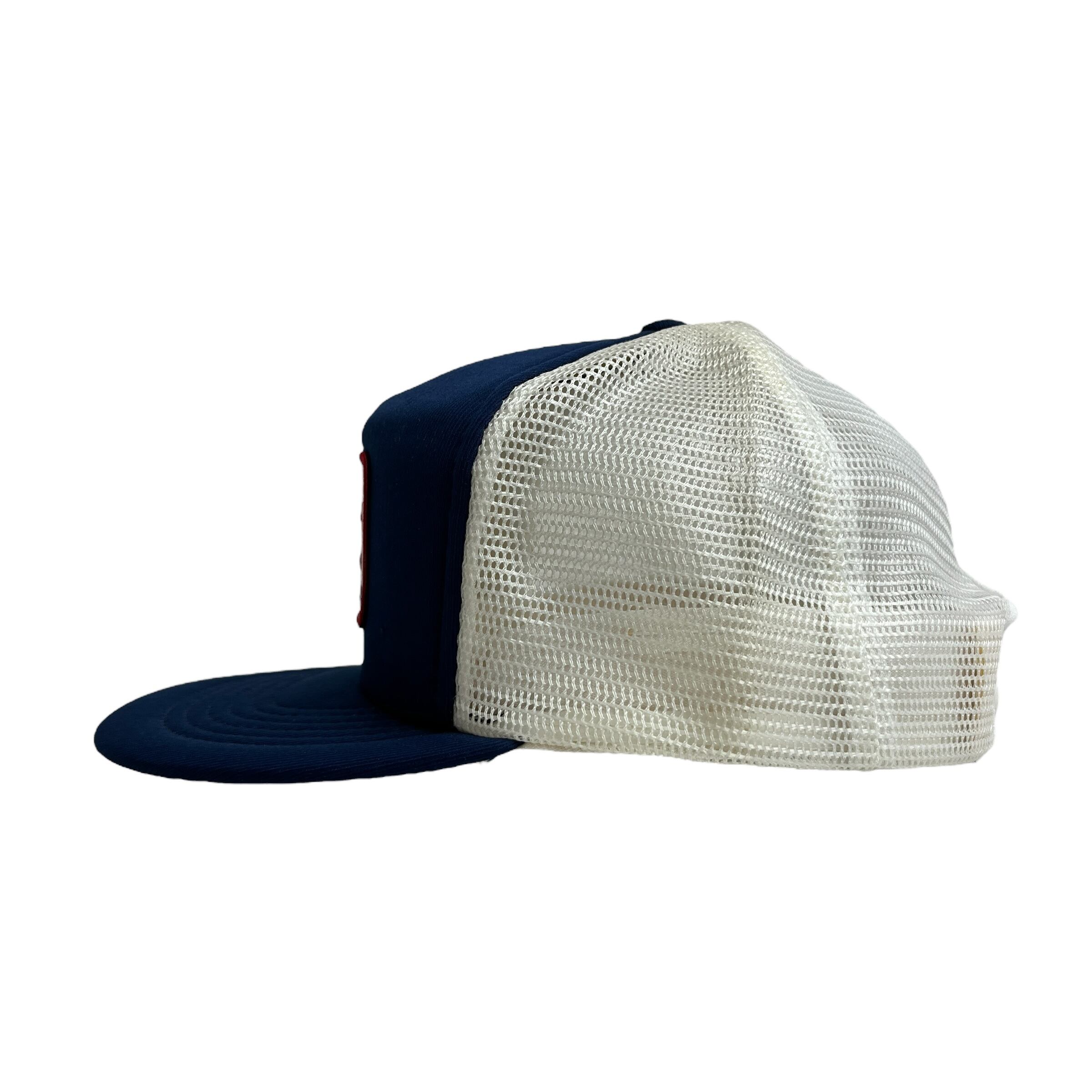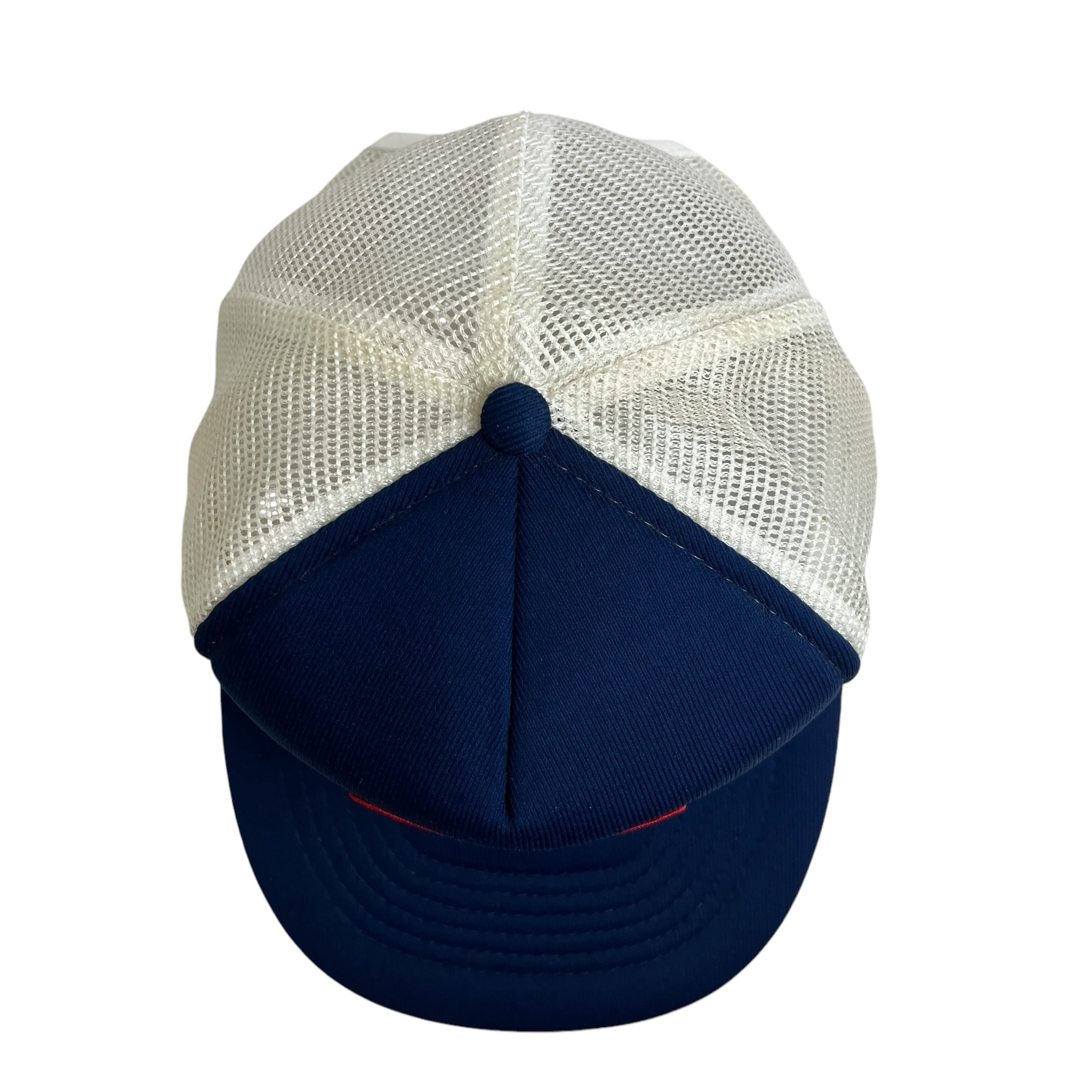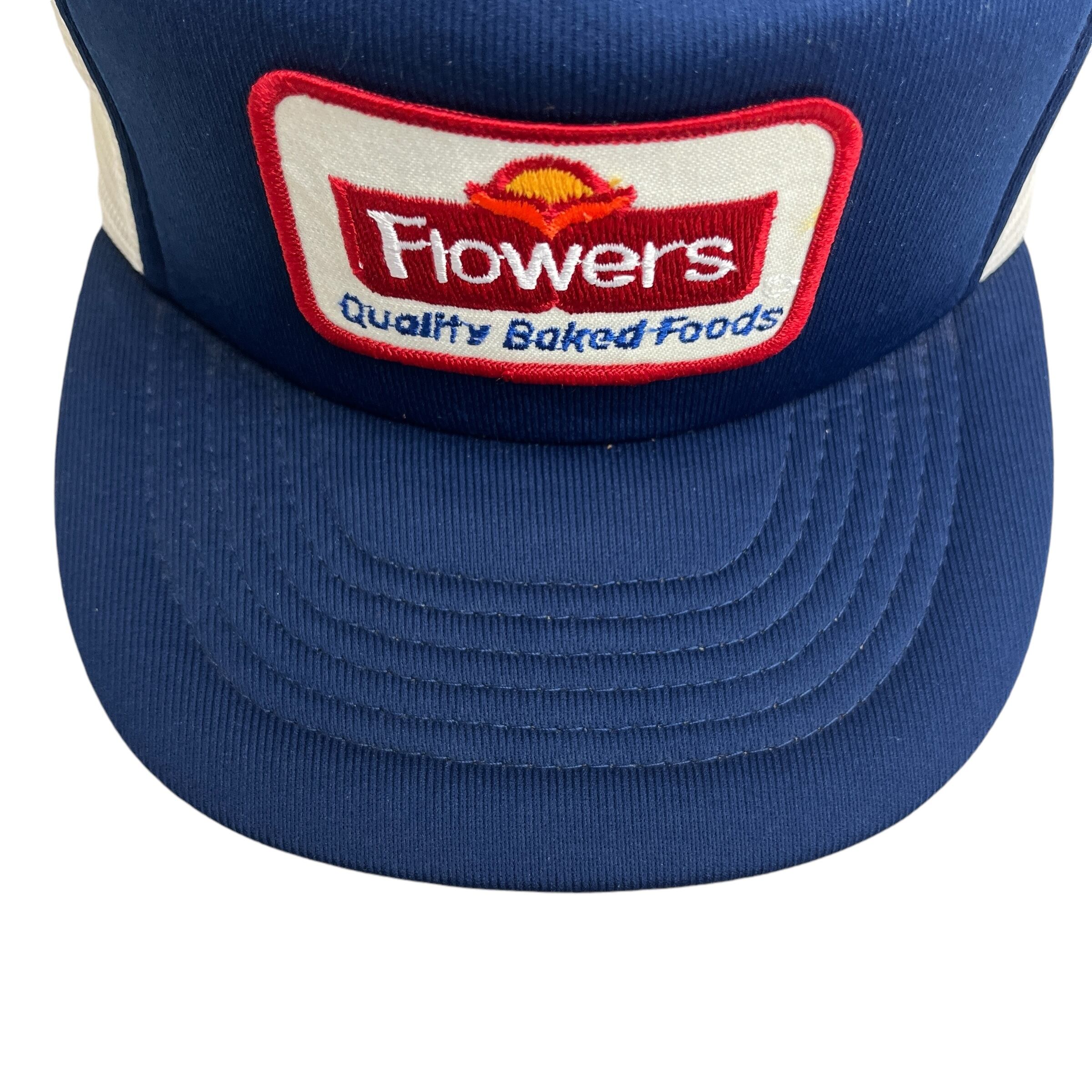 【キャップ/帽子】Flower Quality Baked Foods ビンテージ ワッペン 刺繍 ツートンカラー メッシュキャップ ネイビー 紺 ホワイト 白 レッド 赤 Capital製