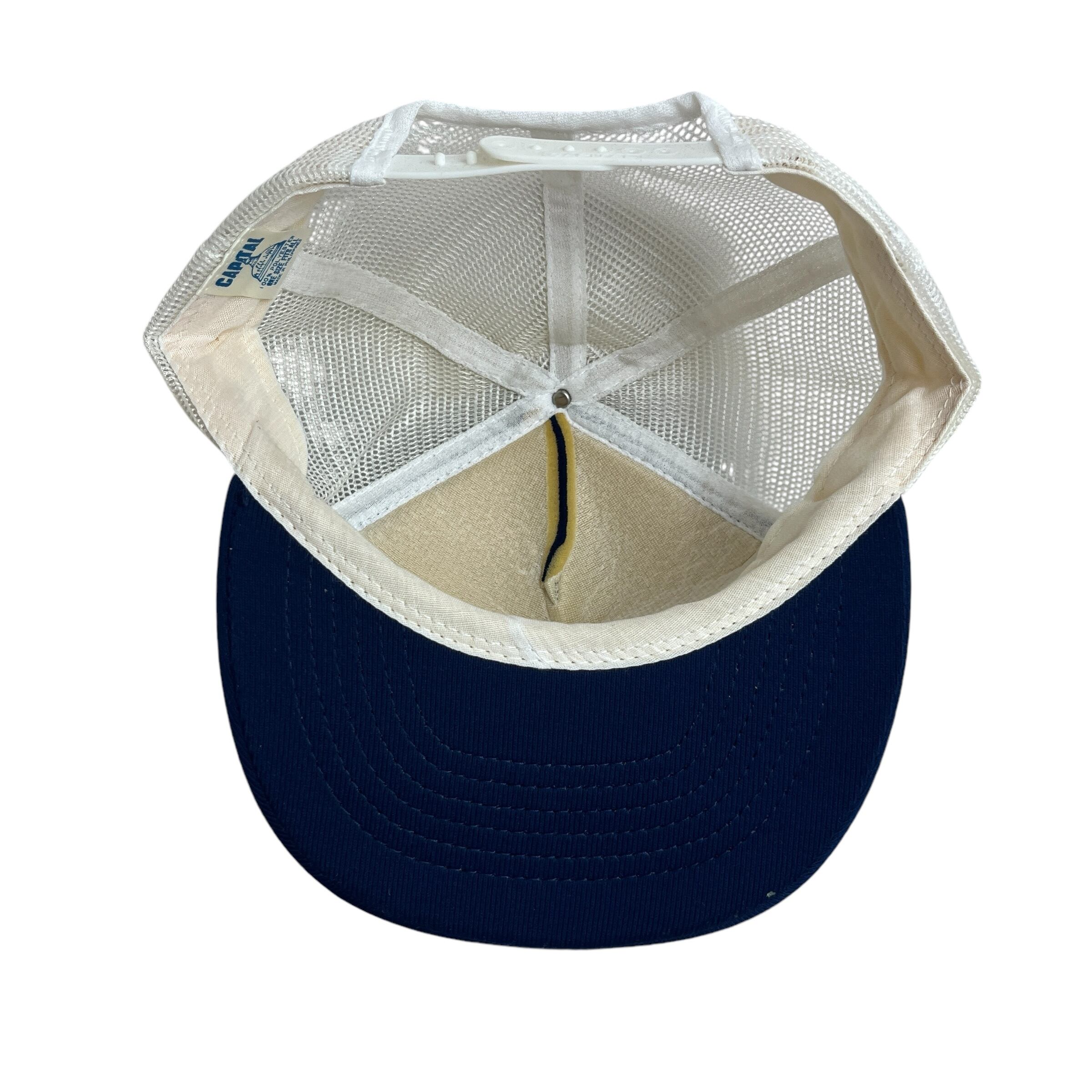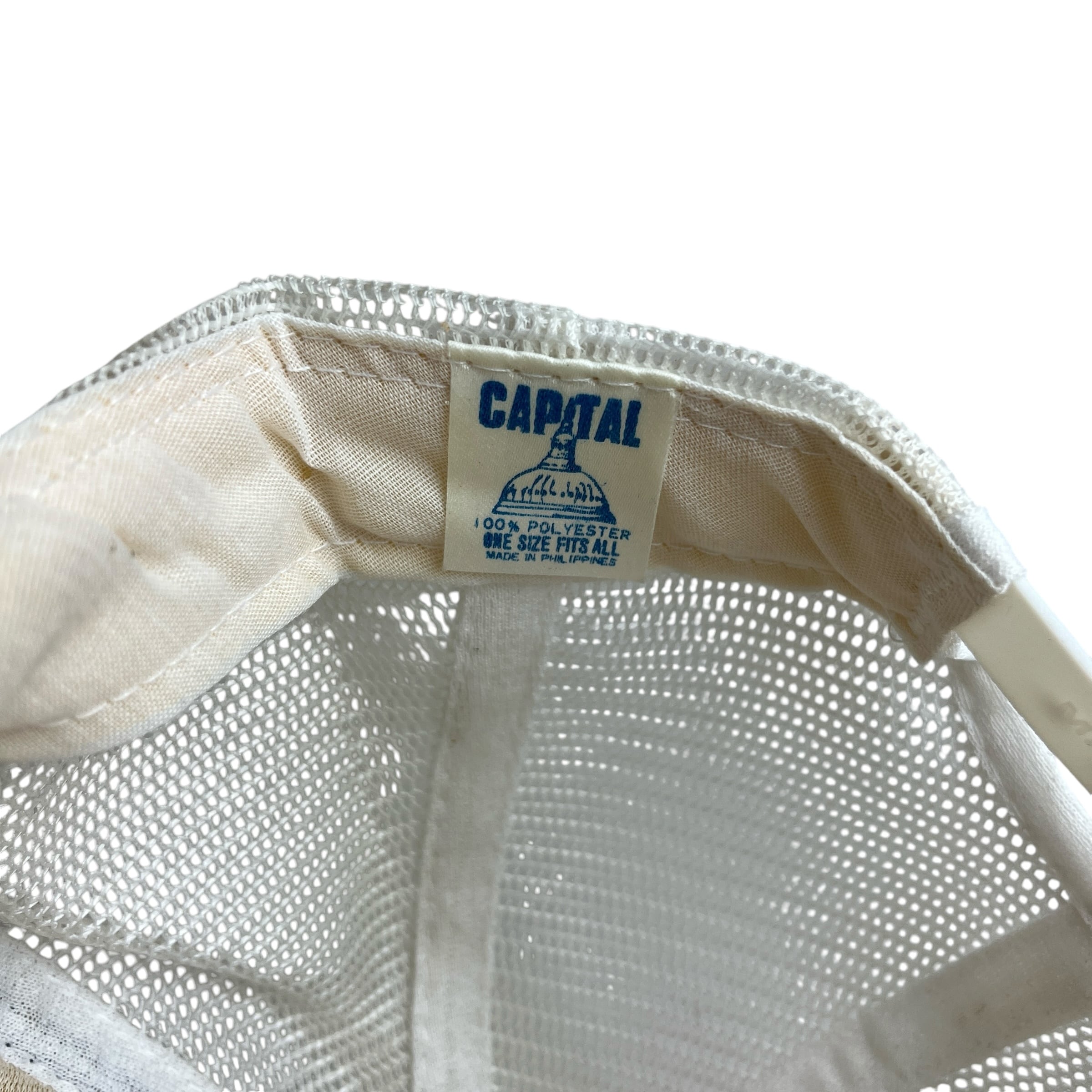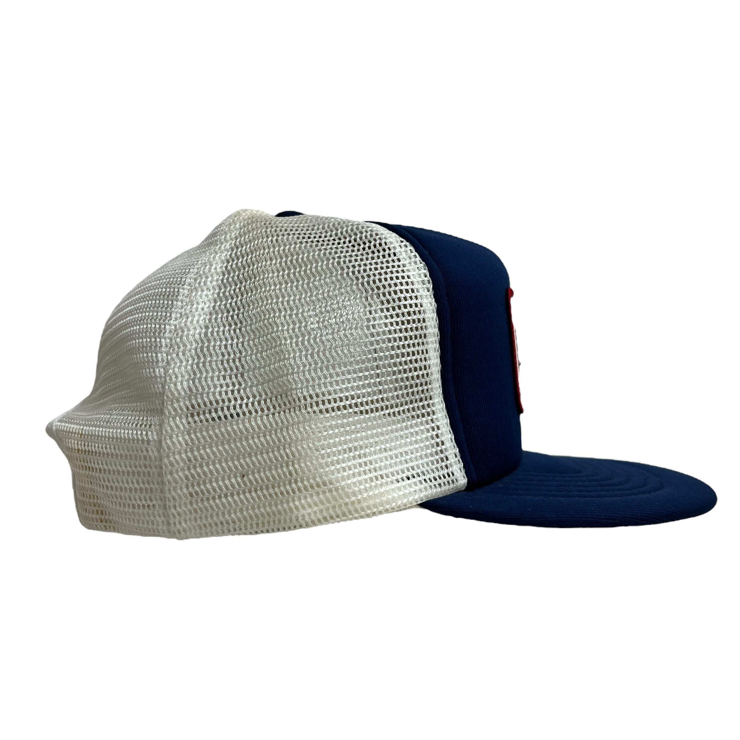 【キャップ/帽子】Flower Quality Baked Foods ビンテージ ワッペン 刺繍 ツートンカラー メッシュキャップ ネイビー 紺 ホワイト 白 レッド 赤 Capital製