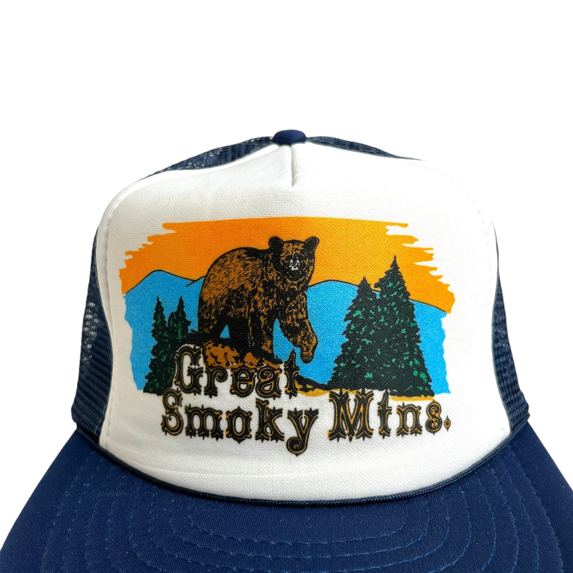 【キャップ/帽子】Great Smoky Mtns 熊 アニマルプリント ビンテージ メッシュキャップ ネイビー 紺 ホワイト 白 イエロー 黄 ライトブルー 水色