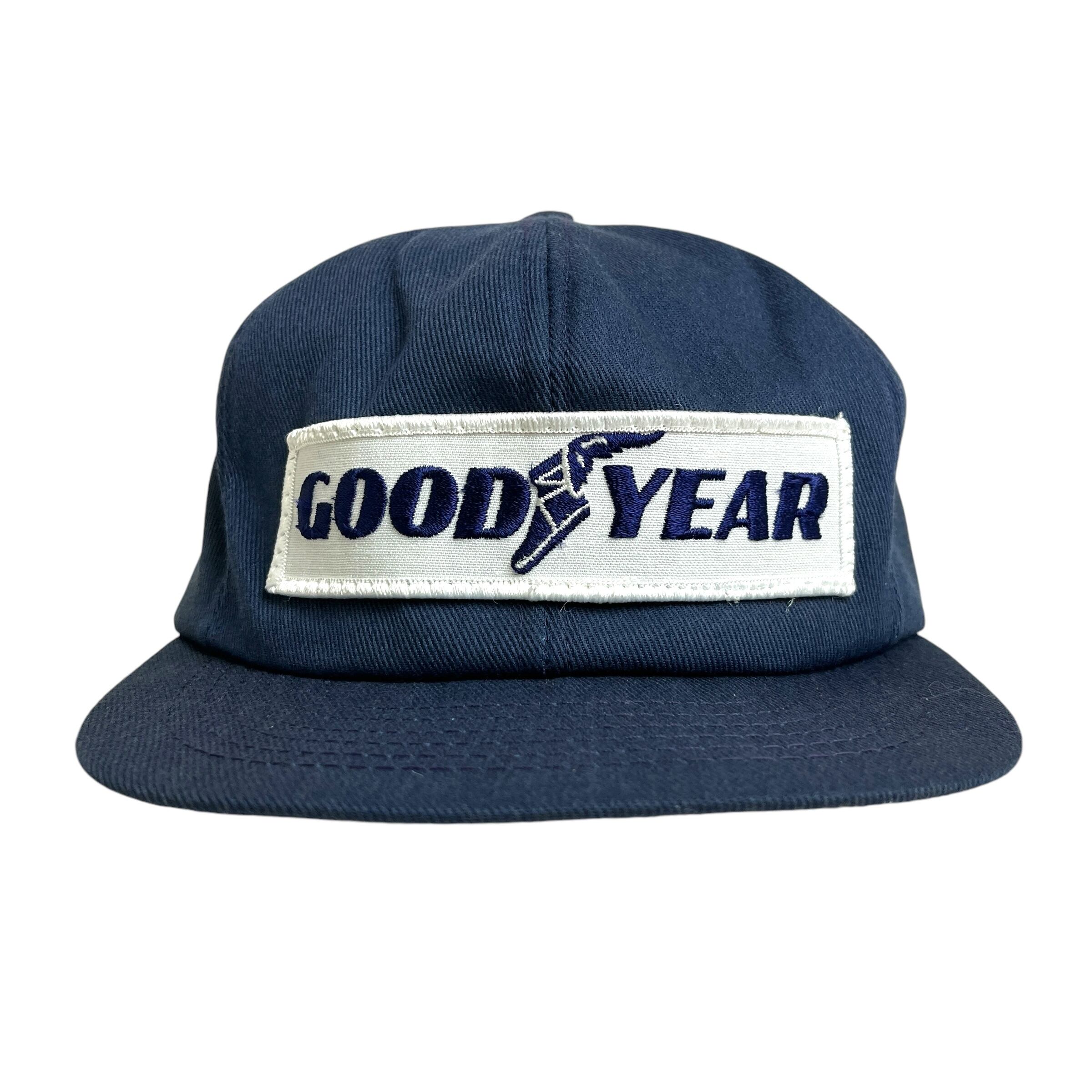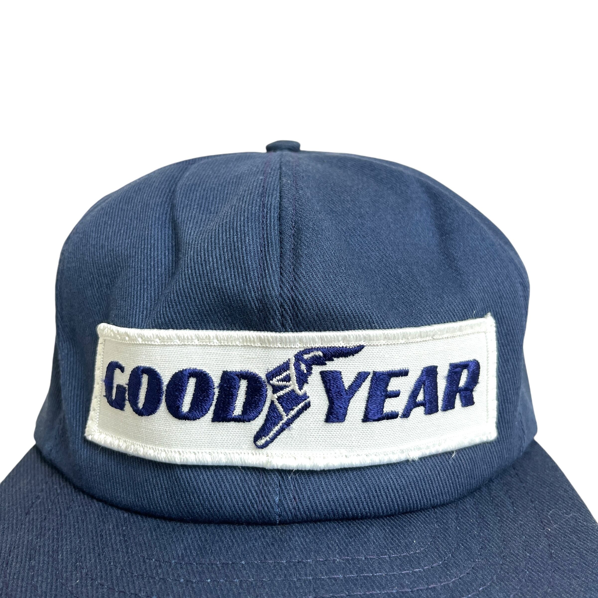 【キャップ/帽子】アメリカ製 Goodyear (グッドイヤー) ワッペン トラッカーキャップ ビンテージ ネイビー 紺 ホワイト 白