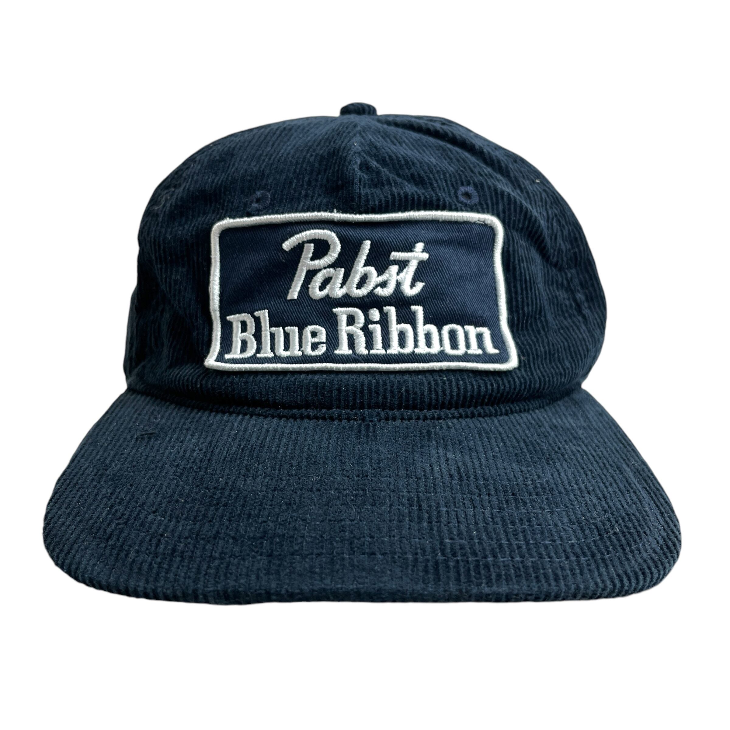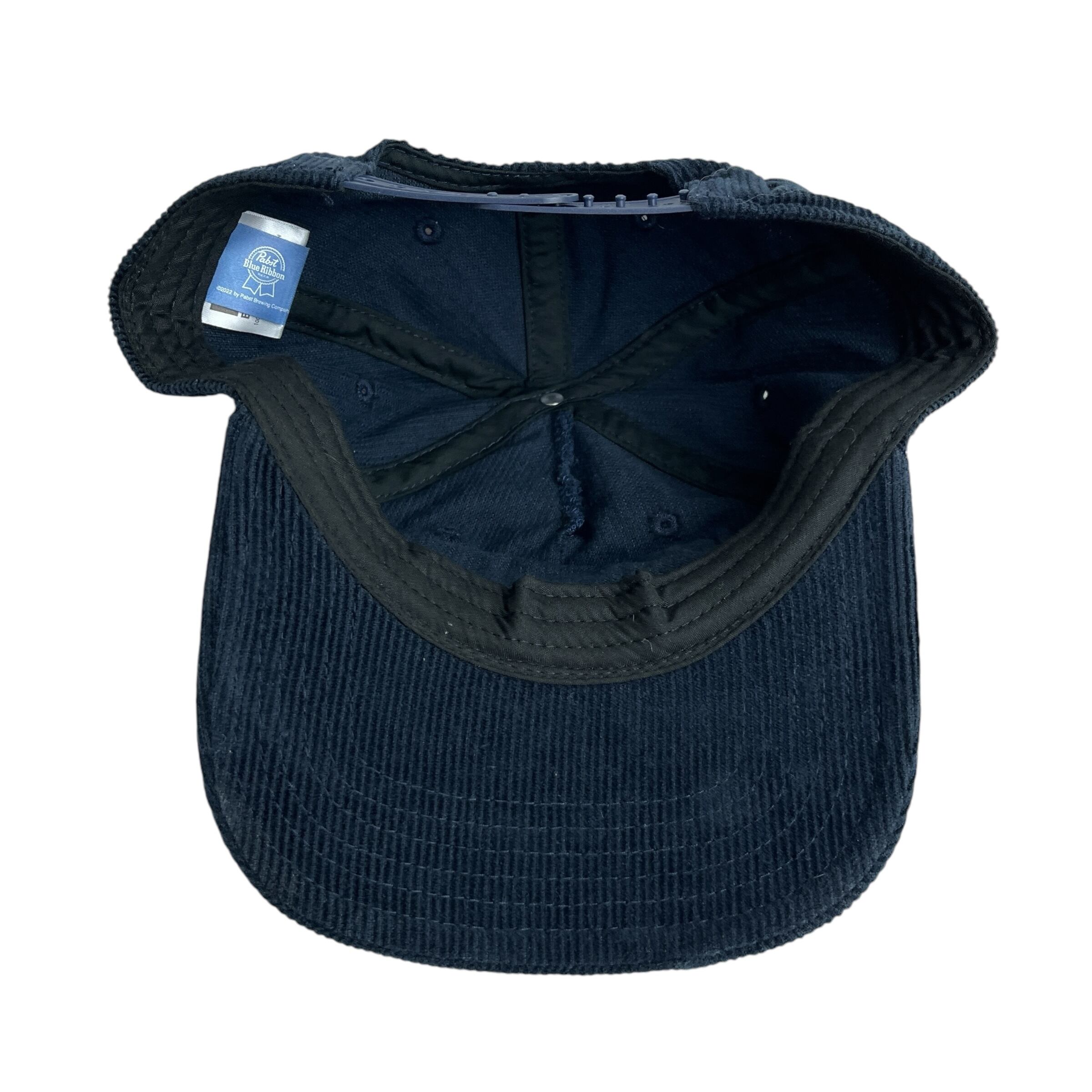 【キャップ/帽子】Pabst Blue Ribbon (パブストブルーリボン) コーデュロイキャップ ワッペン 刺繍ロゴ ネイビー 紺色